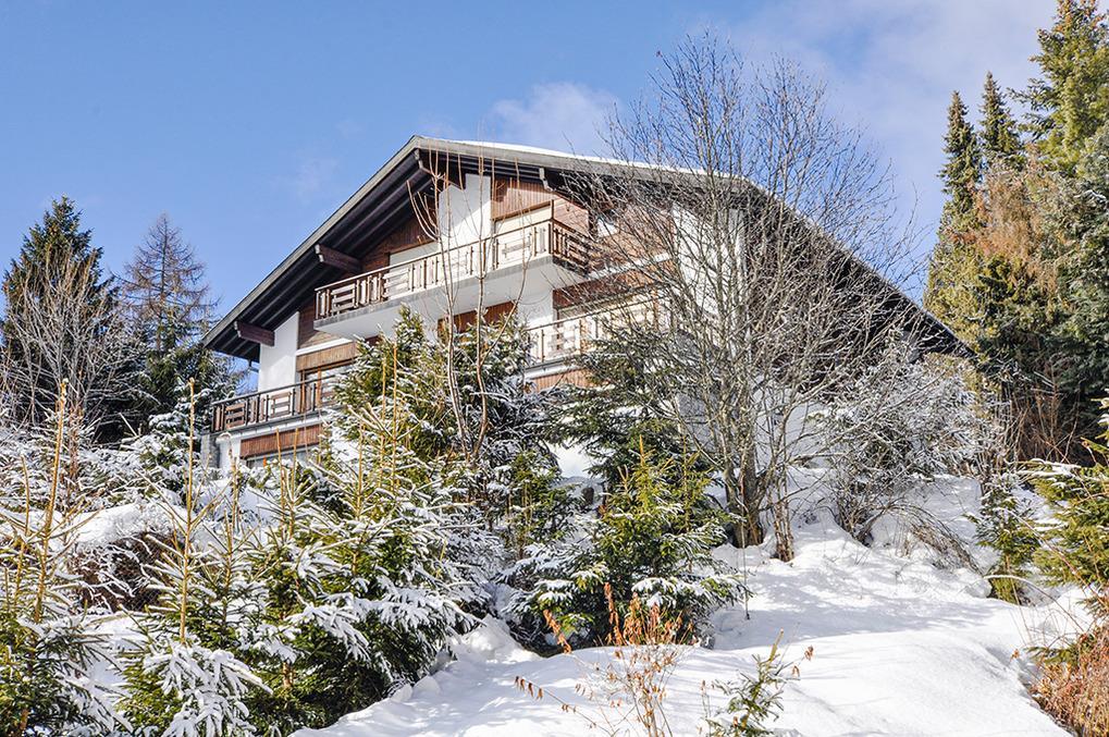 Ort: Crans-Montana. Optimaler Standort: Talstation Les Violettes-Gondelbahn nur 150 m! Skiabfahrt bis in die Nähe des Hauses. Ruhige Lage mit herrlichem Blick auf die imposanten Viertausender des Wallis. Bahnhof Standseilbahn Crans-Montana 1 km. Ortsmitte Montana ca. 2 km. Skibus nur 100 m.
