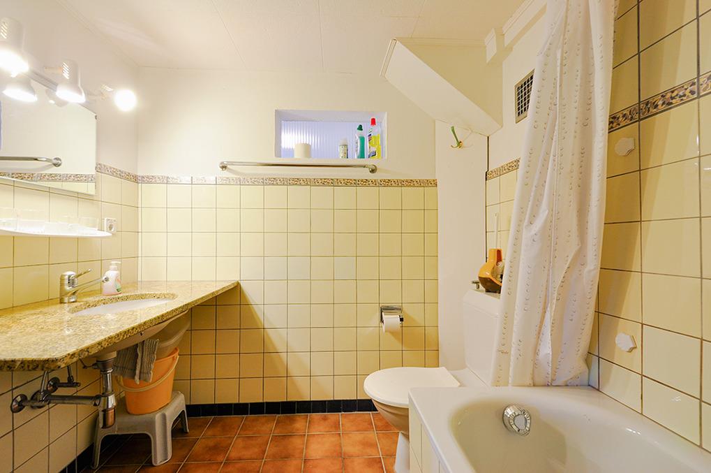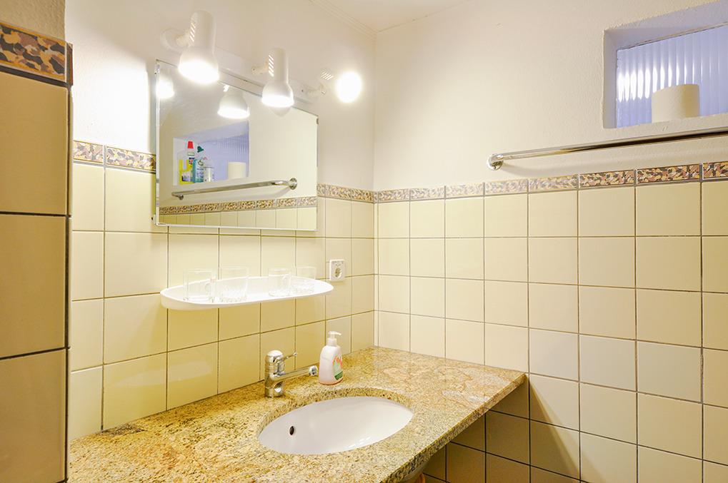 2. Etage (Dachgeschoss mit Schrägen): Großes 3-Bettzimmer mit Doppelbett, Einzelbett. Separates WC mit Wb.