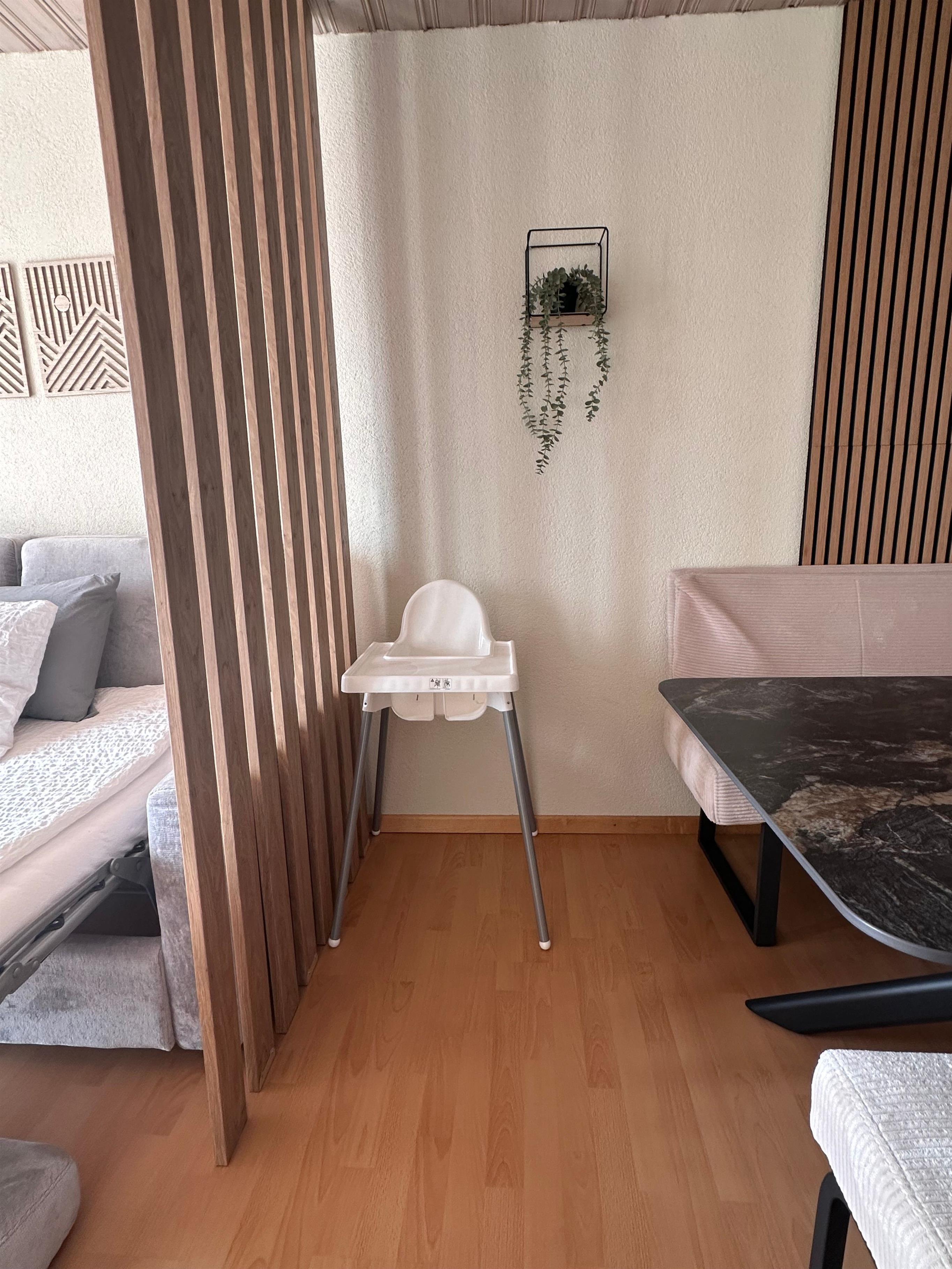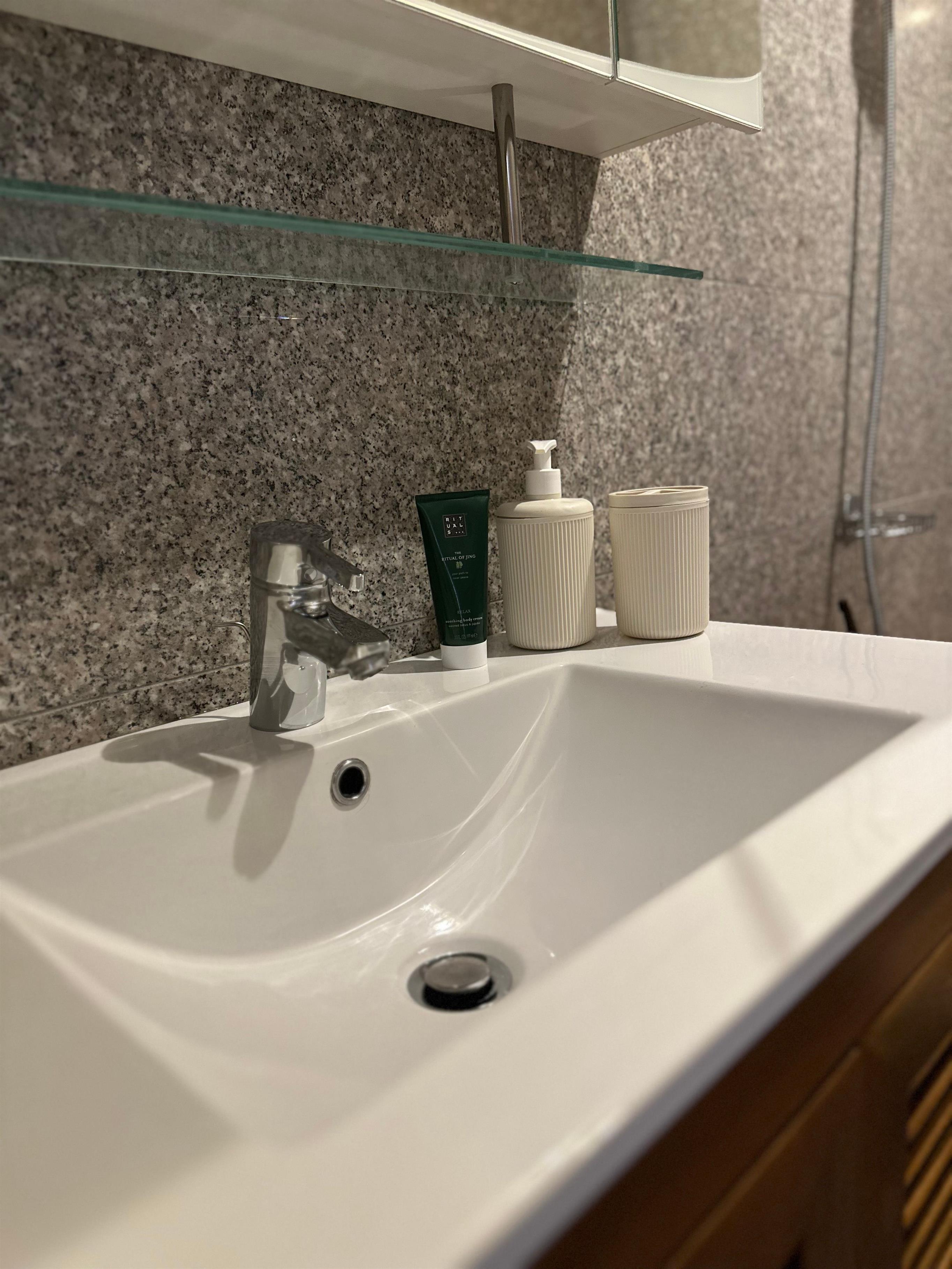 Inside, you will find comfortable and practical facilities designed to make your stay as pleasant as possible. The provision of towels, bed linen, a selection of coffee, tea and essential kitchen supplies such as salt, vinegar, oil and spices will ensure you can self-cater without any fuss. For your convenience, we also offer shower gel, soap and washing-up liquid. A folding bed for babies is available, as well as a practical ski rack and a boot dryer for the winter months, so that your ski equipment is always ready for use.