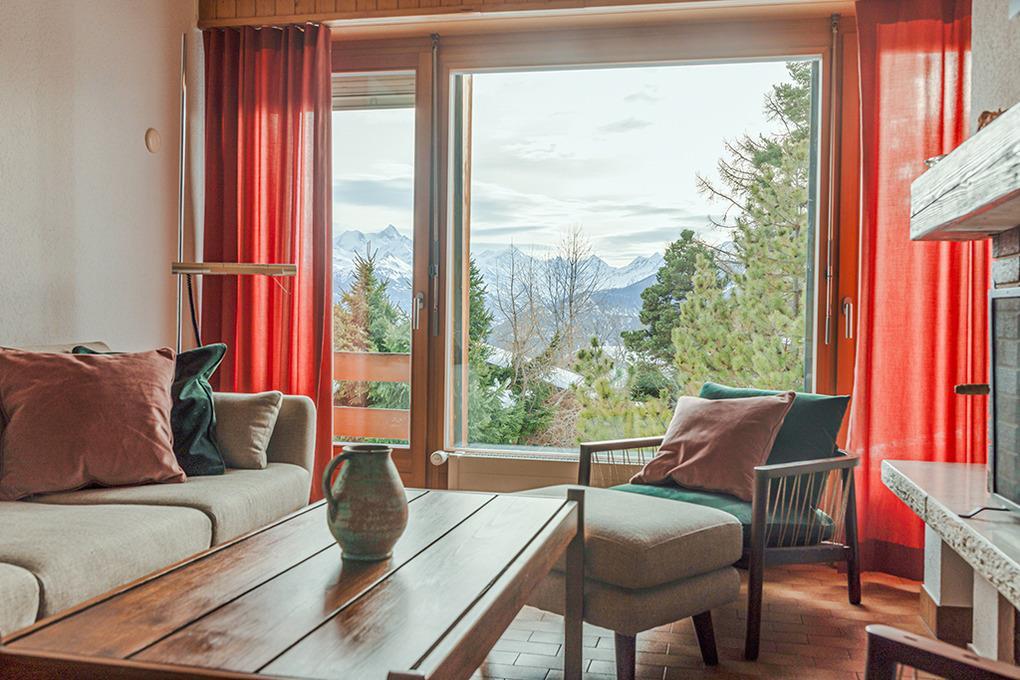 Ort: Crans-Montana. Ruhige Lage mit herrlichem Blick auf die imposanten Viertausender des Wallis. Ortsmitte Montana mit vielen Geschäften, Restaurants 2 km. Golfplatz, Badesee Moubra je 3,5 km. Kostenloser Ortsbus, Gondel mit Sommerbetrieb jeweils 350 m. Bahnhof Standseilbahn 1 km. Viele Wanderwege verlaufen in der Nähe des Hauses (ca. 400 m).