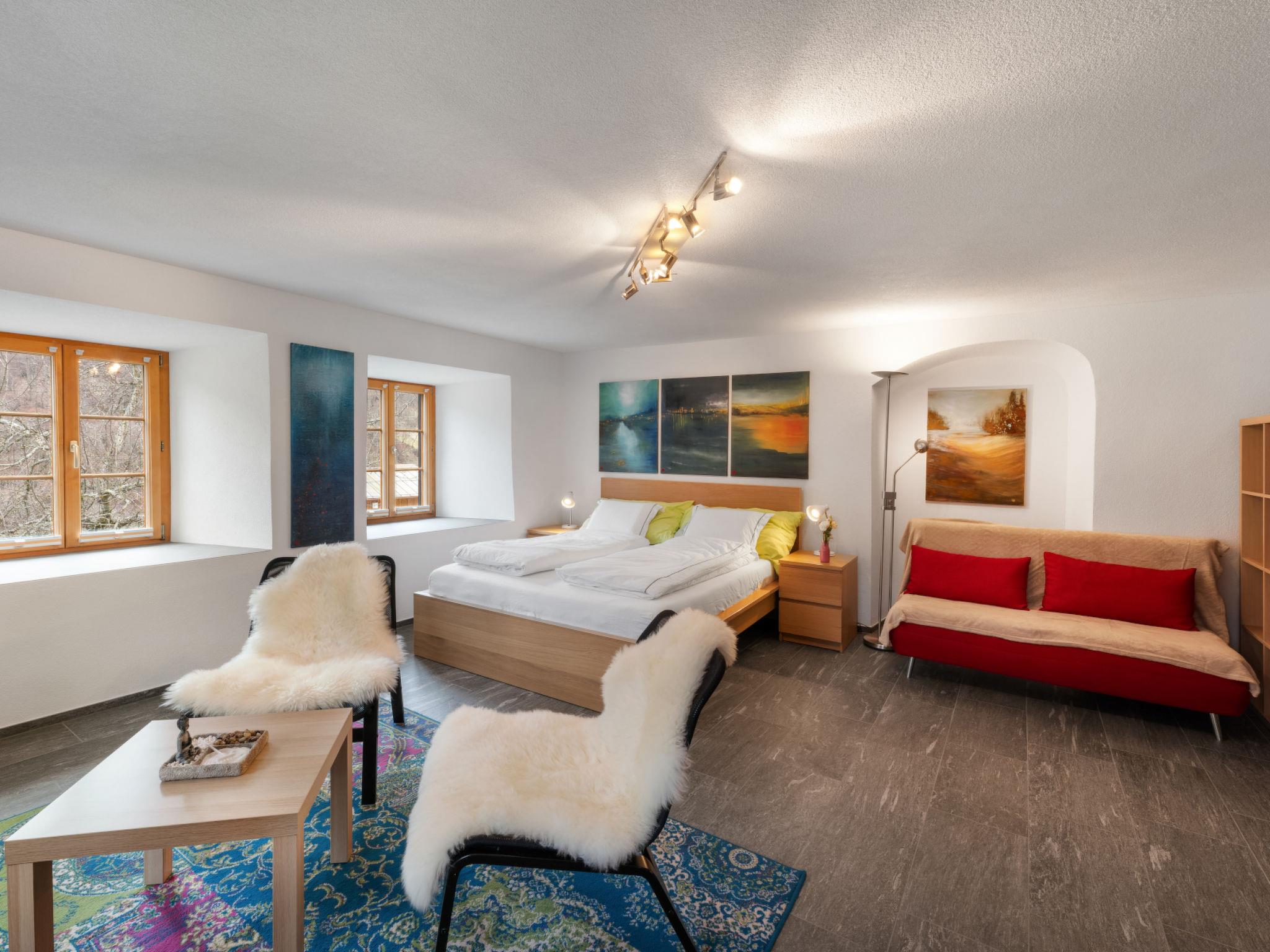 Die modernen, komfortablen Ferienwohnungen (48 m2 + eigener Südbalkon 11 m2) liegen im Parterre eines komplett renovierten Hauses ruhig gelegen im Dorfkern von Cumpadials. Die Ferienwohnungen verfügen über eine moderne Einrichtung, kostenfreie Parkplätze und Ski-, resp. Veloraum. Haustiere sind erlaubt, Preis CHF 10.00 pro Hund und Nacht. Muss bei der Buchungsabwicklung angeben werden.Hier geht es zum virtuellen Rundgang. Schlafzimmer:Das Wohn-, Schlafzimmer mit grossem Doppelbett hat eine zusätzliche Sitzecke (2 Sessel und Couchtisch), einen grossen Fernseher, eine Sofa-, Lesenische und eine Arbeitsecke mit Bürotisch sowie einem Curved Office Monitor. Bettwäsche ist vorhanden und im Preis inklusive. Wohnzimmer:Wohnzimmer mit Arbeitsecke (Bürotisch / Bildschirm), Sofanische und separate Sessel/Couchtisch. Kostenloses TV und WLAN. Küche:In der separaten Küche befinden sich neben dem Esstisch und einer Kommode moderne Geräte wie ein hochwertiger Backofen, ein Induktionsherd, Geschirrspüler und ein freistehender grosser Kühlschrank wie auch sämtliche Küchenuntensilien inkl. Fondue- sowie Racletteausrüstung und eine Nespresso Kaffeemaschine. Küchenwäsche sowie Oel, Salz und Pfeffer sind vorhanden und im Preis inbegriffen. Badezimmer:Das grosszügige Badezimmer verfügt über Dusche / WC und Lavabomöbel, kleiner Kleiderschrank und eine eigene Waschmaschine. Frotteewäsche, Bademäntel und Finken sind vorhanden und im Preis inbegriffen. Ausstattung1 Schlafraum, Backofen, Balkon, Fondue-Set, Garten, Geschirrspüler, Haustiere auf Anfrage, Haustiere erlaubt, Internetverbindung, Kaffeemaschine, Kombinierter Wohn- und Schlafbereich, Küche, Küche separat, Küchenwäsche, Kühlschrank, Nichtraucherzimmer-/wohnung, Parking, Raclette-Set, Schlafcouch, Terrasse, Tisch- und Küchenwäsche, Töpfe Pfannen Geschirr, TV, Waschmaschine, WiFiBadezimmerAnzahl Badezimmer: 1, Bad oder Dusche/WC, Badewäsche vorhanden, Dusche, HaartrocknerDienstleistungenBike-friendly, Fahrradabstellraum, Gepäcktransport, Haustiere auf Anfrage, Haustiere erlaubt, Ladestationen für E-Bike, Parkplatz, Skikeller/-abstellraum, Transfer-/ShuttleserviceFreizeit-/Sportangebot des GastgebersFischen (Patent notwendig), Langlauf, Schneeschuhwandern, Skitouren, WanderwegeLageAn Velo-/Bikeroute gelegen: 0.01, Entfernung zum Golf (in km): 16, Entfernung zum nächsten Bahnhof (in km): 0.8, Entfernung zum nächsten Restaurant (in km): 0.8, Entfernung zum nächsten Skilift (in km): 8, Entfernung zur Dorfmitte (in km): 0.01, Entfernung zur Loipe (in km): 0.3, Mit öffentlichen Verkehrsmitteln erreichbar, Ruhige Umgebung, Zentrale Lage (im Dorf/Stadt)StockwerkHochparterreUnterkunftstypAussergewöhnliche Unterkünfte, Ferienwohnung, PrivateigentümerBelegung1-2 Personen1-2 Erwachsene
