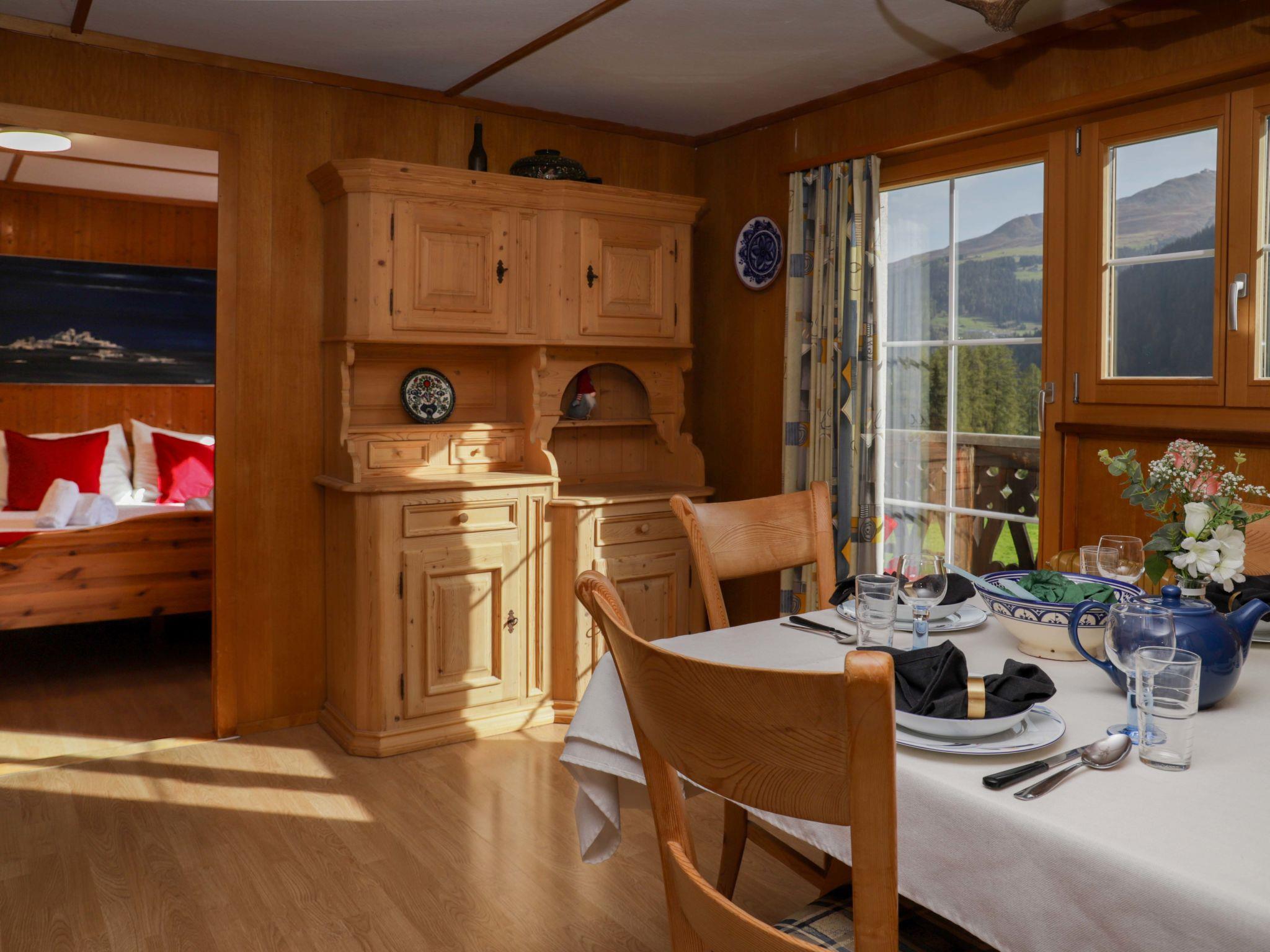Old, cosy, comfortable single-family house "Haus Chumma", 2 storeys, built in 1960, surrounded by meadows. In the district of Davos Glaris 6.1 km from the centre of Davos Platz, in a quiet, sunny, elevated position on a slope, 50 m from the edge of the forest. In the house: central heating system. Storeroom available. Motor access to the house. Parking at the house. Bus stop "Davos Glaris Mühle" 900 m. Please note: no lift. Loading and unloading of baggage is possible at the holiday house.