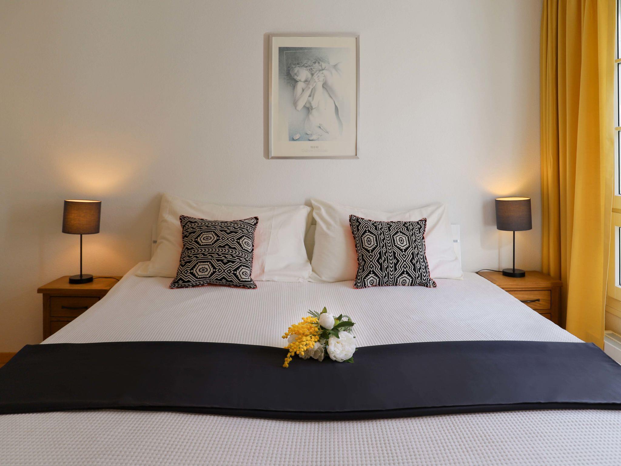 "Mon Repos", 2-room apartment 68 m2, on the ground floor. Spacious and bright, very modern and tasteful furnishings: living/dining room with cable TV and flat screen. Exit to the garden, to the patio. 1 room with 2 beds. Open kitchen (oven, dishwasher, 4 ceramic glass hob hotplates, microwave, electric coffee machine, Capsules for coffee machine (Nespresso) extra) with dining table. Bath/shower/WC. Underfloor heating. Parquet floors. Terrace 10 m2, south facing position and west facing position. Terrace furniture, deck chairs (2), conservatory. View of the mountains, the valley and the countryside. Facilities: Internet (WiFi). Garage space n 29. 13341