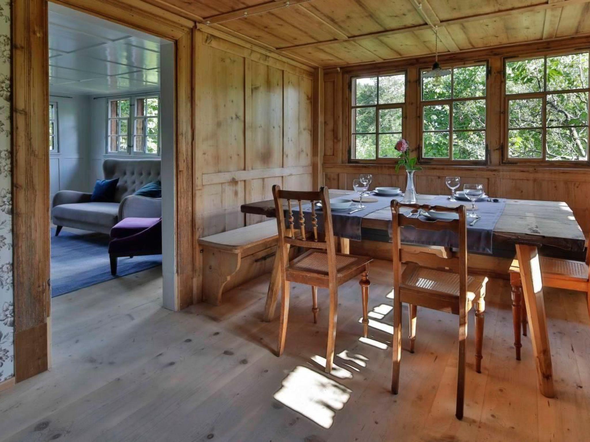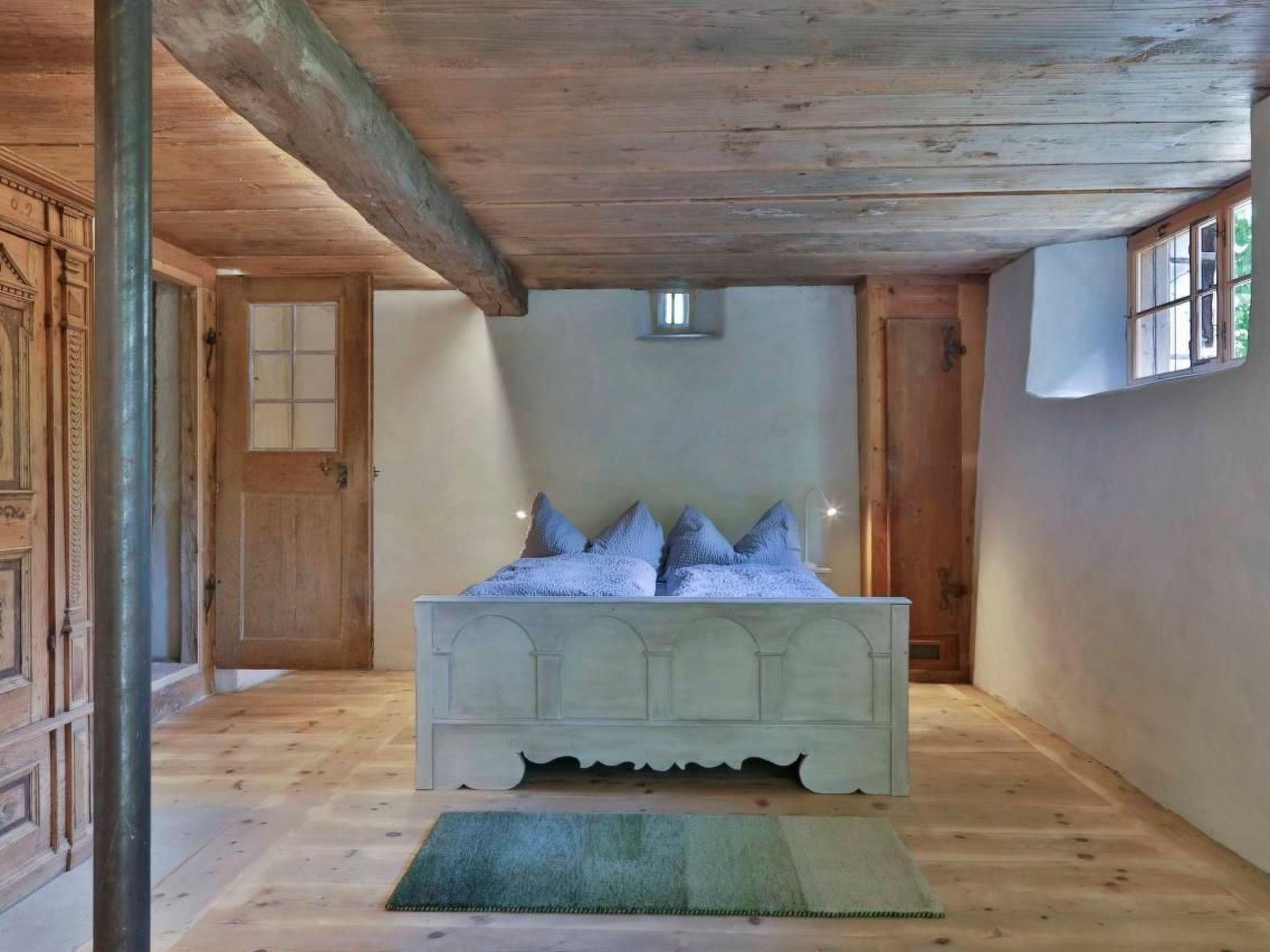 Our Bergli holiday home in Ebnat-Kappel is located in the idyllic landscape of Toggenburg (St.Gallen). It is surrounded by beautiful mountains and the view is unique. The house, with its 300-year history, has been lovingly and comprehensively restored and adapted to today's requirements so that guests feel completely at ease. The accommodation Up to 6 people can stay with us. With a modern and an antique kitchen, with a wood stove and fireplace, a beautiful living room and adjoining room with a tiled stove, bathroom and shower, separate toilet and four bedrooms, there is plenty of space for our guests to relax and get together. Behind the house there is a beautiful seating area with a large dining table. The kitchen is very well equipped. Crockery, cutlery, pots, frying pans, baked goods, a raclette and fondue set and a Nespresso machine are available. The two beautiful living rooms, with a tiled stove and a large dining table, invite you to linger. Two bedrooms are each equipped with a double bed. The other two bedrooms each have two single beds in them. The beds are made up with fresh linens. In the Roman bathing temple you can expect a fantastic view while bathing and a large shower with rainwater spray. There is a change around the house to enjoy nature and the sun. Other important information Family price (2 adults with children) 1,400.- p. Week