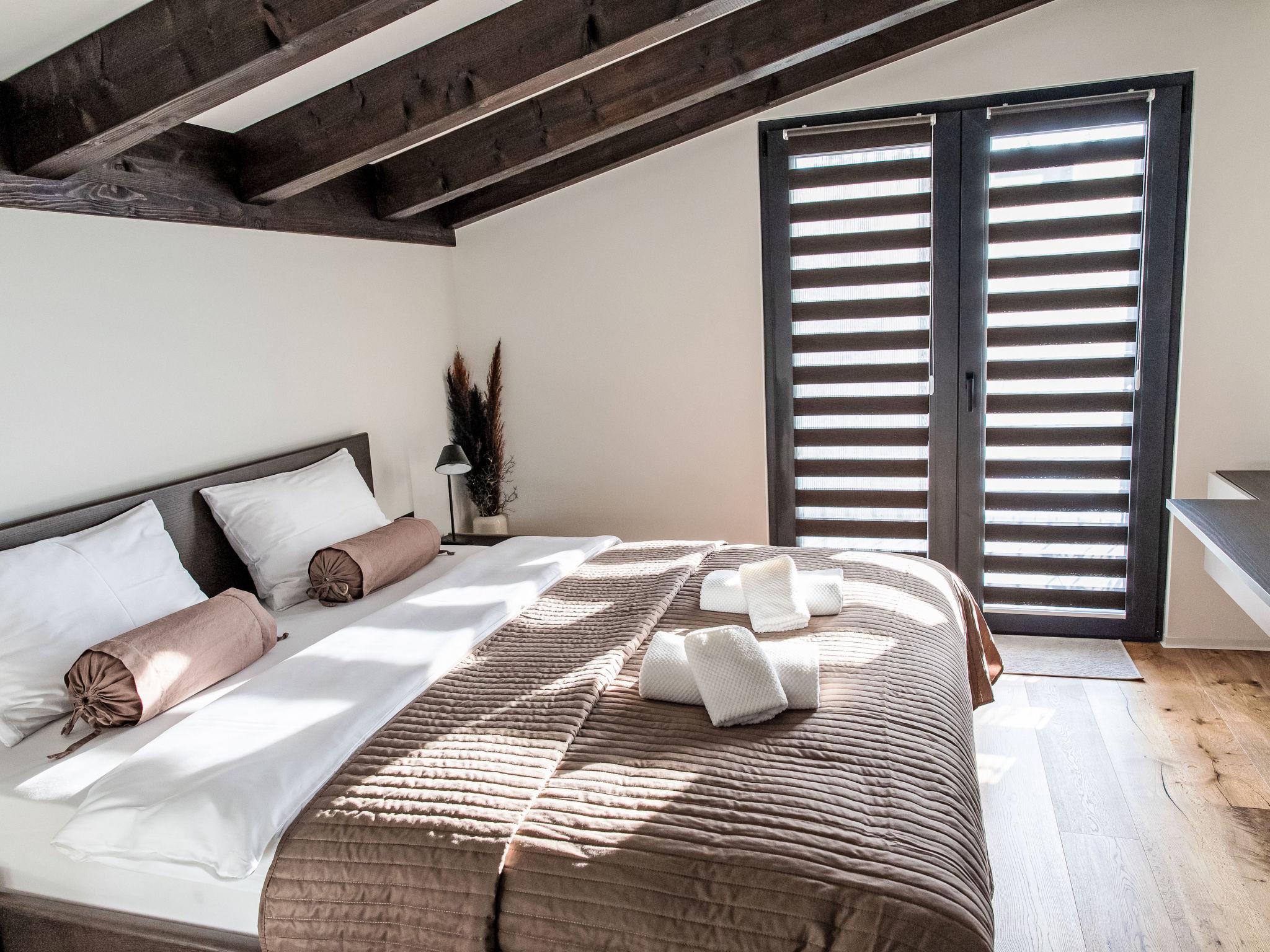 Five elegant bedrooms with French beds and Smart TV (including Netflix), four offering direct balcony access.