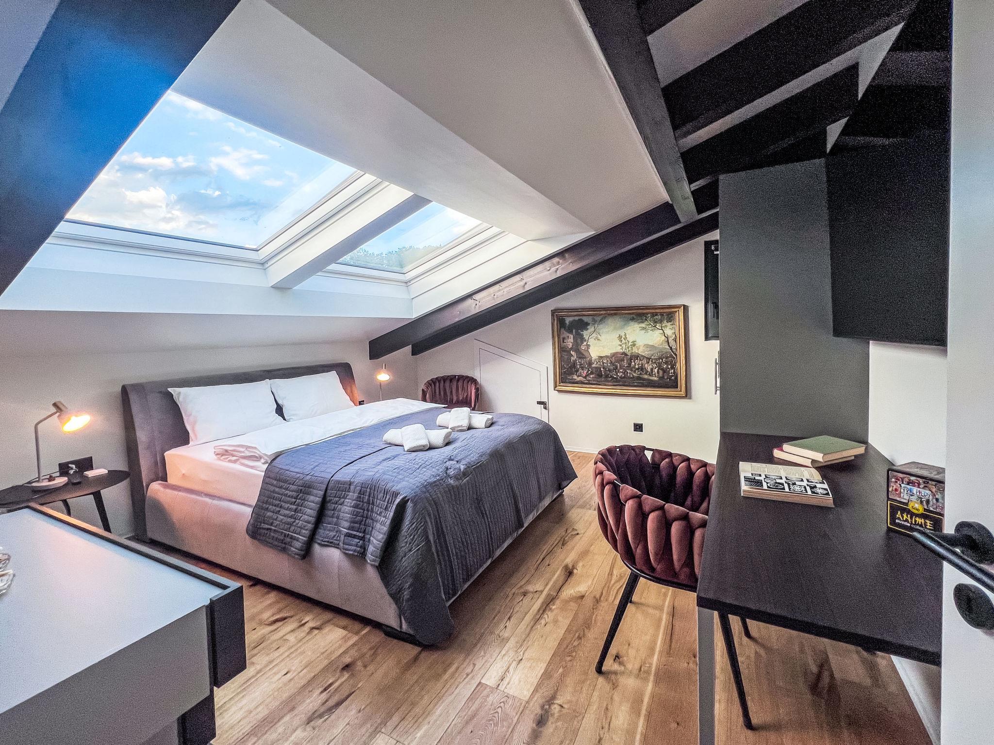 Perched at approximately 800 meters above sea level, this elevated private estate offers uninterrupted panoramic views stretching across the lake and into the Alpine horizon.