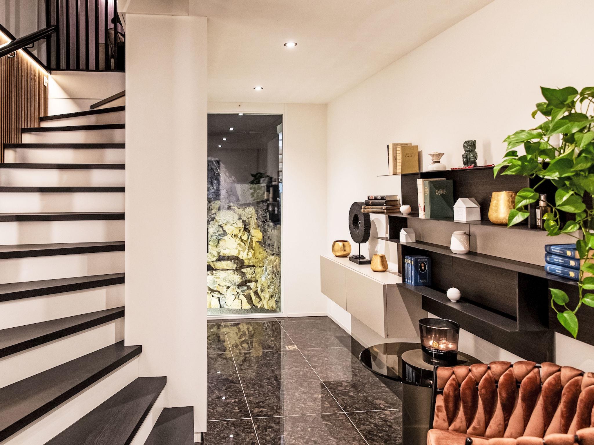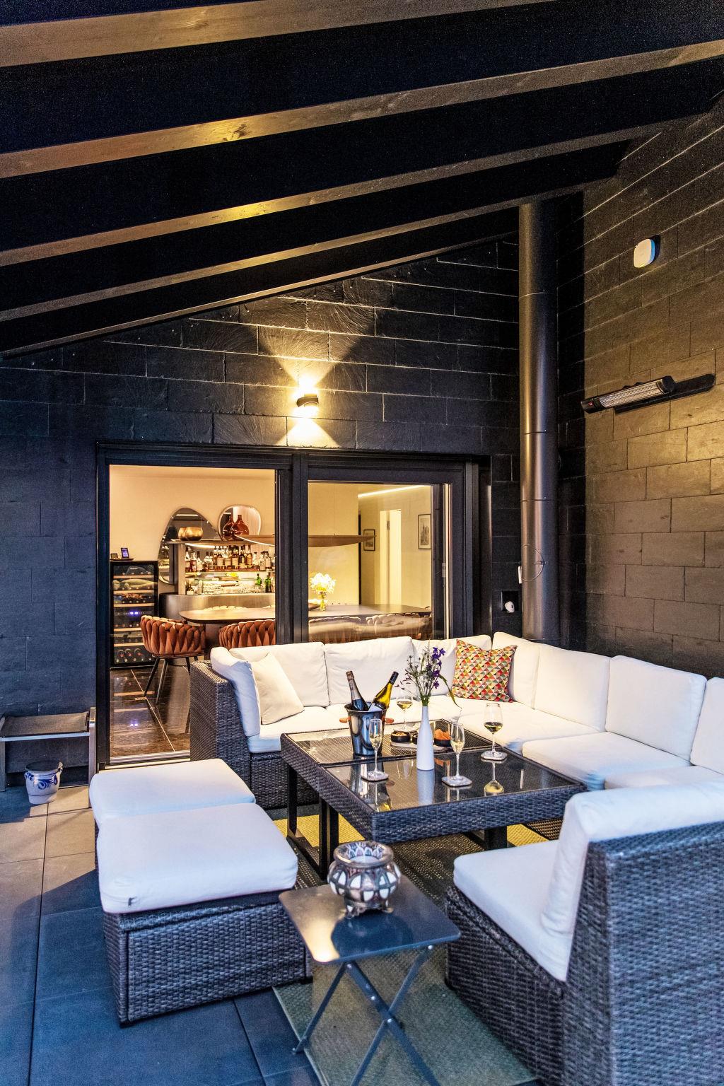 Direct access to the expansive terrace with panoramic natural swimming pond, private hot tub and refined outdoor lounge.