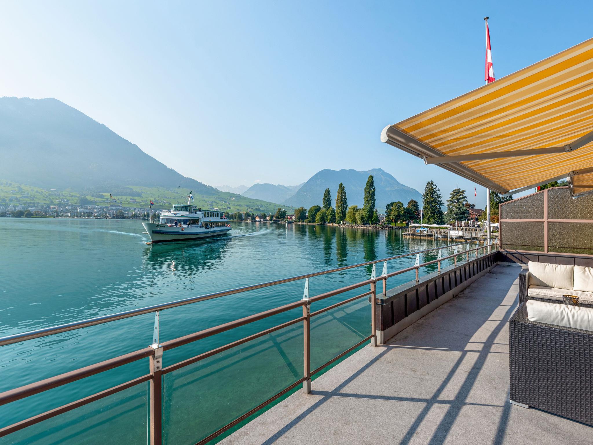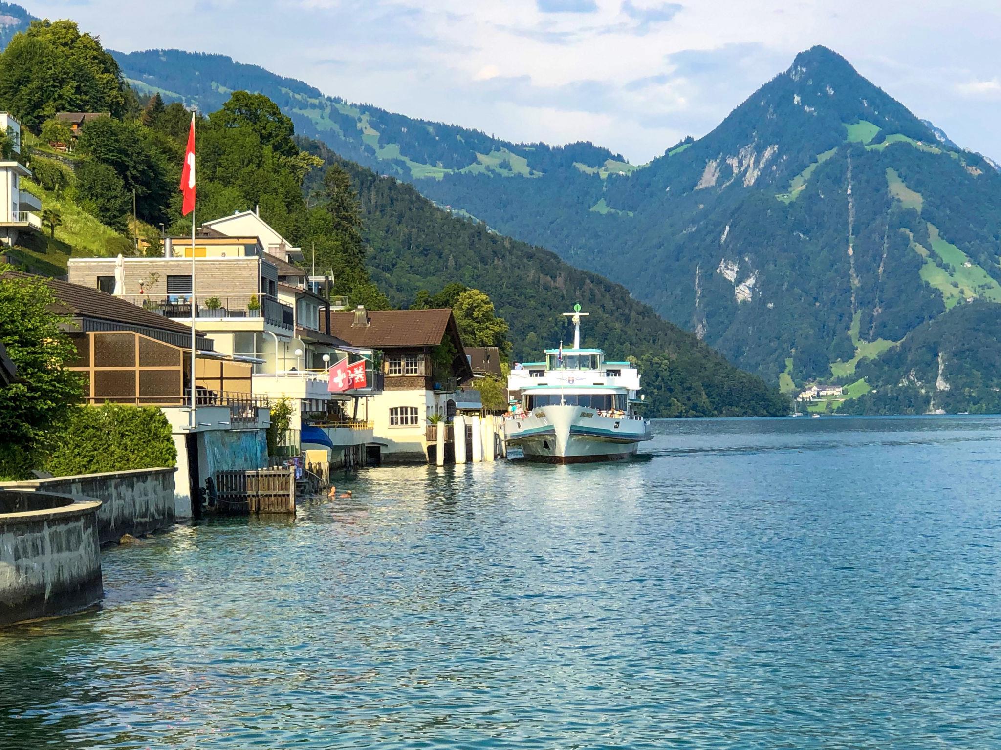 Cosy, comfortable single-family house "Seestern direkt am See". On the outskirts, in a quiet, sunny position, on the lake. For shared use: lawn for sunbathing 50 m2 (fenced). Bathing jetty bathing place. In the house: central heating system. Motor boat (on request). Motor access to the house. Parking (for 2 cars) at the house. Shop, grocery 300 m, supermarket 1 km, restaurant 50 m, bus stop 300 m, railway station 4 km, shingle beach 5 m, outdoor swimming pool 1 km, lake Vierwaldstättersee 5 m. Cable car 5 km, ski lift 5 km, ski school 5 km, children's playground 500 m. Nearby attractions: Stanserhorn 5 km. Well-known ski regions can easily be reached: Klewenalp 5 km, Engelberg 20 km. Well-known lakes can easily be reached: Vierwaldstättersee. Ennetbürgen ship station 50m away. Shop Volg also open on Sundays. Motorboat: The Seestern holiday home has a boathouse. Exclusively for the holiday guests there is the possibility to rent the motor boat (2021) during the stay: Morningstar M 498 R for 5 people (driver's license category A), outboard motor: Suzuki DF 80 ATL, bathing platform, fully comprehensive insurance. Deposit CHF 500.00 (insurance deductible), excl. petrol. Guests without a boat license can book a half-day excursion. Please contact the host upon receipt of the travel documents. The boat can be driven all year round.