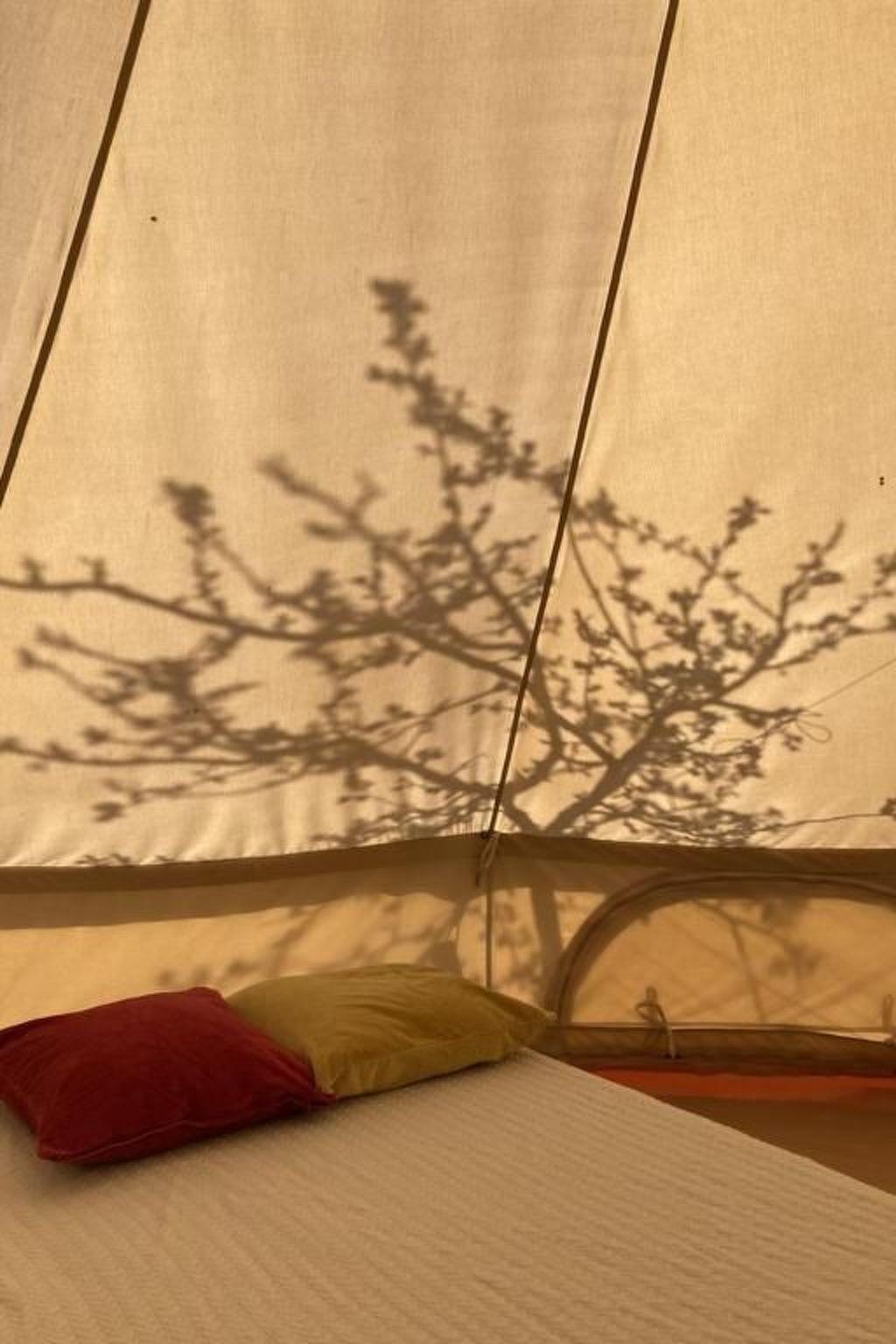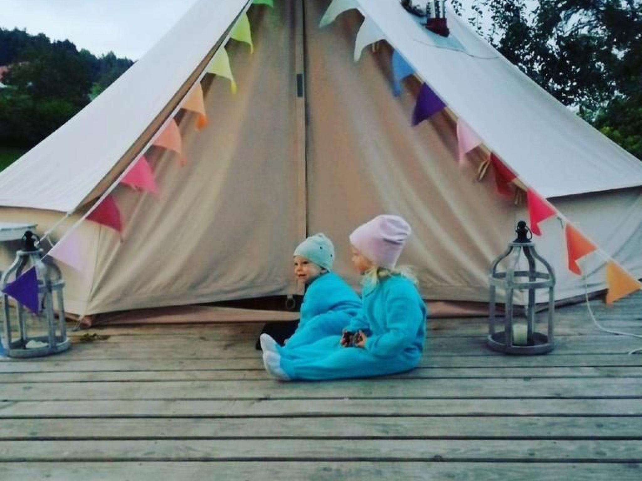 Our cotton tents (bell tents) are suitable for families, couples or groups of up to 12 children/4-6 adults/10 teenagers. Mattresses and pillows for 4 people are provided, including a stove for cooking or heating. The tent "under the ash tree" has marvellous "tree shade" from midday onwards.