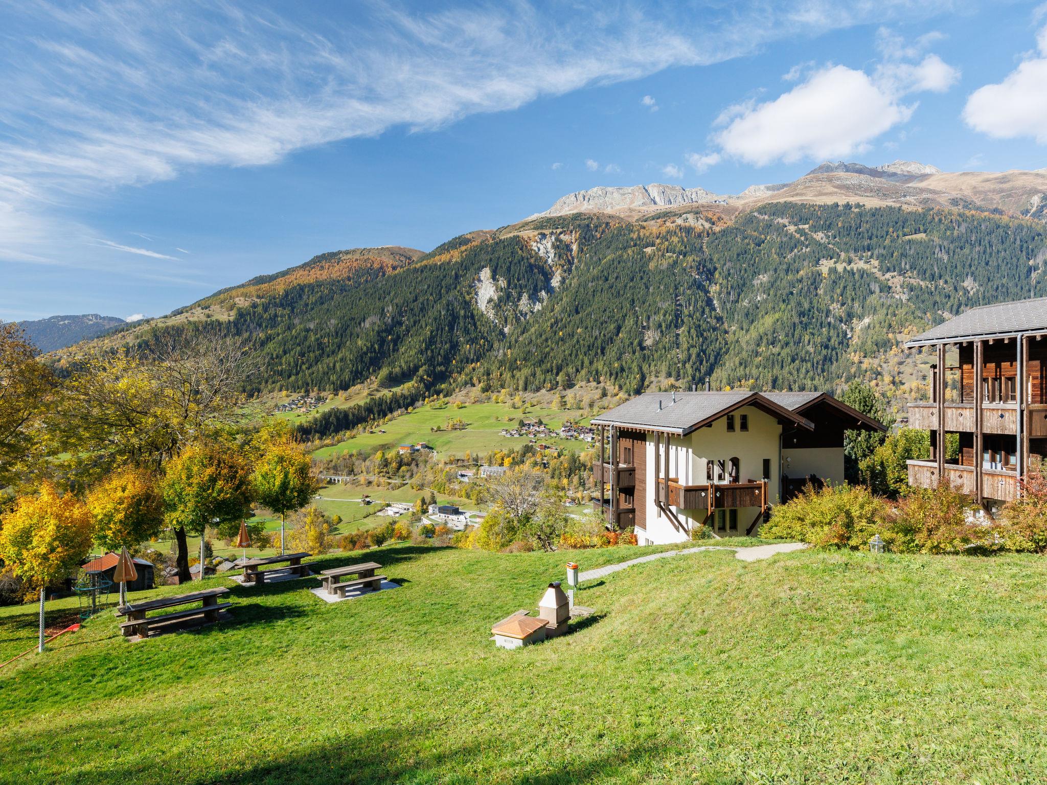 Cosy, rustic holiday village "Aragon", 1'200 m a.s.l.. 21 houses in the resort. On the outskirts, 500 m from the centre of Ernen, in a quiet, sunny position on a slope, 4 km from the skiing area. For shared use: table tennis, barbecue, fireplace, children's playground. In the house: storage room for bicycles, storage room for skis, central heating system, washing machine, tumble dryer (for shared use, extra). Motor access to the grounds (mountain road). In Winter: please take snow chains, 4x4 car recommended in winter. Communal covered parking. Shop 500 m, bus stop 100 m. Golf course (18 hole) 25 km, tennis 4 km, indoor tennis centre 4 km, sports centre 4 km, gondola lift 4 km, skisport facilities 4 km, ski rental 4 km, ski bus stop 100 m, ski school 4 km, cross country ski track 4 km. Well-known ski regions can easily be reached: Aletsch Arena 4 km, Bellwald 12 km. Hiking paths: Landschaftspark Binntal 10 km. The new hanging bridge connects the two hiking estates of Ernen and Bellwald and provides access to the national cycle route nr. 1 (road of the Rhone glacier lake to Lake Geneva). Between Ernen and Mühlebach, the bridge provides direct access to the Matterhorn Gotthard train.