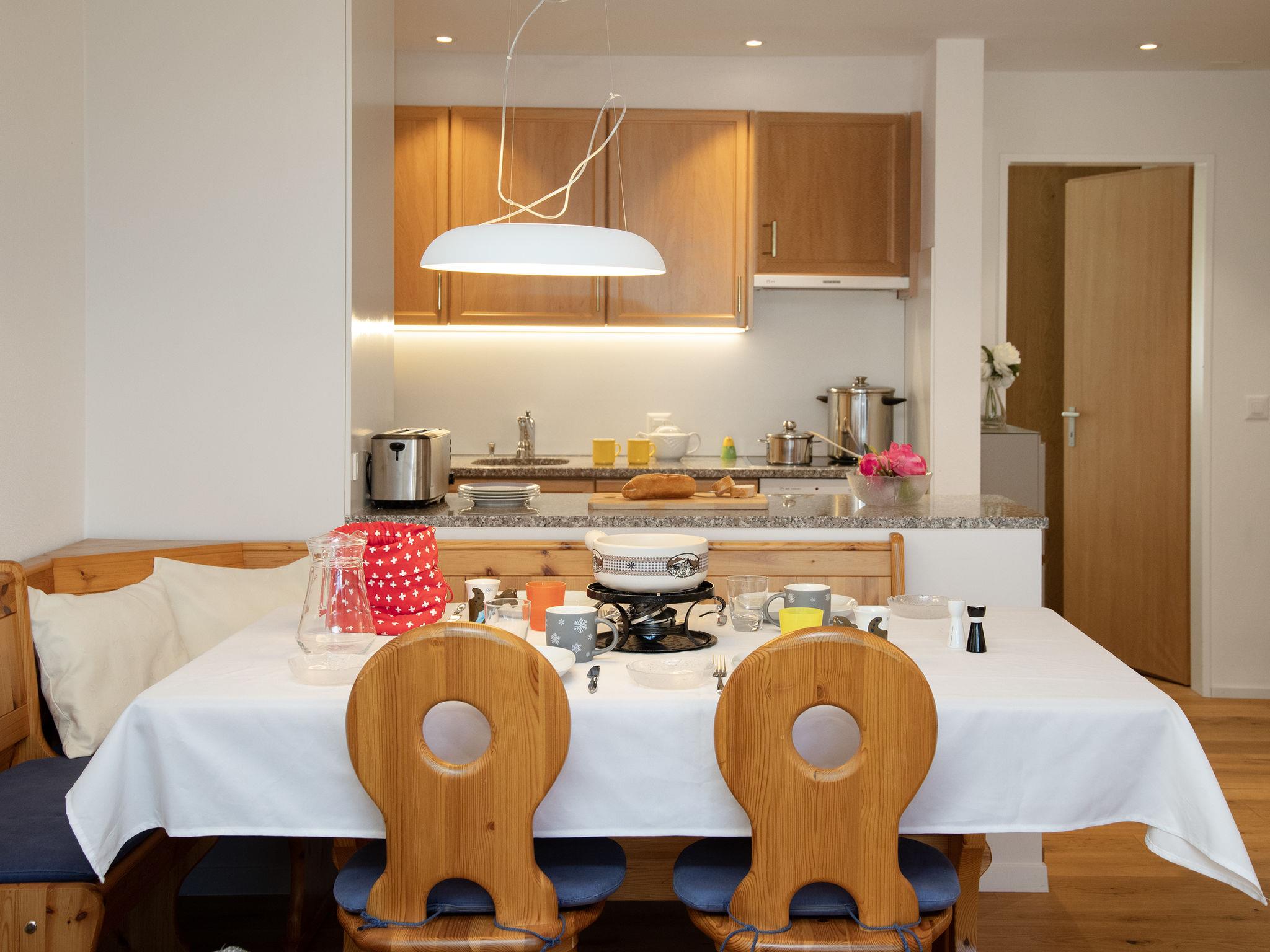 "La Siala Apt.19", 3-room apartment 55 m2 on 2nd floor. Fully renovated in 2021, comfortable and cosy furnishings: living/dining room with cable TV (flat screen). Exit to the balcony. 1 double bedroom. 1 room with 1 x 2 bunk beds. Open kitchen (oven, dishwasher, 4 ceramic glass hob hotplates, toaster, kettle, microwave, electric coffee machine, Capsules for coffee machine (Nespresso) extra, raclette grill, fondue Set (cheese)). Shower/WC. Balcony 8 m2, south facing position. Balcony furniture. Beautiful view of the mountains, the valley and the countryside. Facilities: hair dryer. Internet (WiFi, free). Please note: non-smokers only.