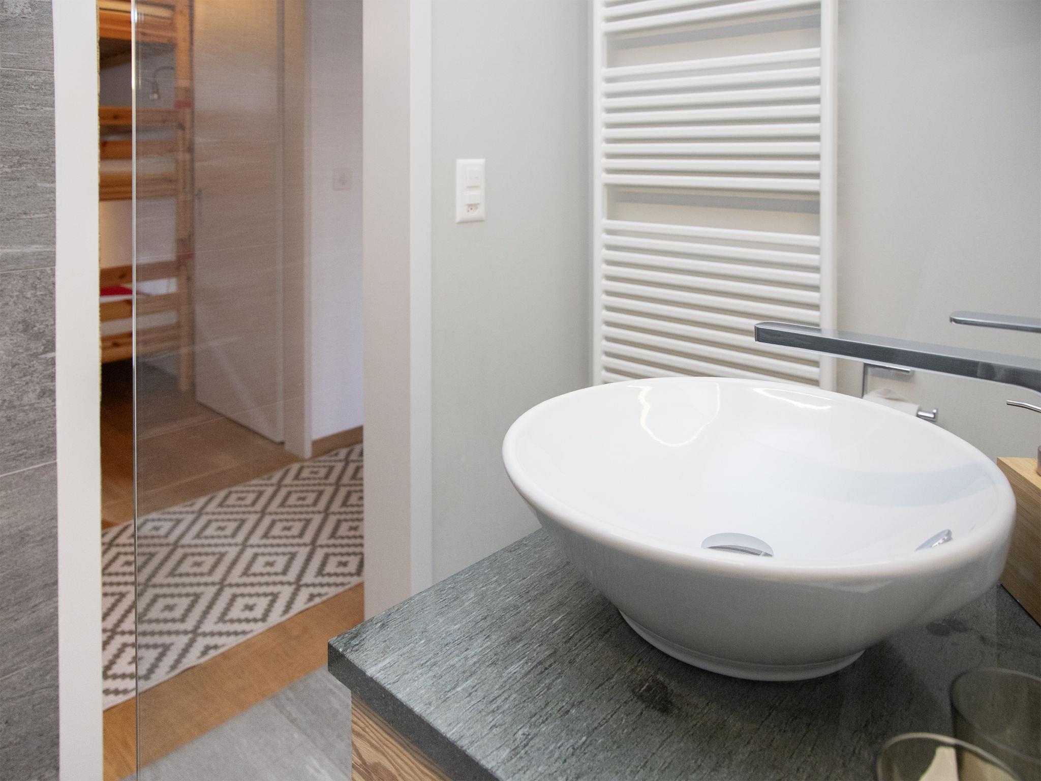 "La Siala Apt.70", 3-room apartment 60 m2, on the top floor. Comfortable and cosy furnishings: living/dining room with cable TV (flat screen). Exit to the balcony. 1 double bedroom. 1 room with 1 x 3 bunk beds. Open kitchen (oven, dishwasher, 4 ceramic glass hob hotplates, toaster, kettle, freezer, electric coffee machine). Shower/WC. Balcony 8 m2, south facing position. Balcony furniture. Beautiful view of the mountains, the valley and the countryside. Facilities: hair dryer. Internet (WiFi, free). Parking space n 7, garage at the house. Please note: non-smokers only.