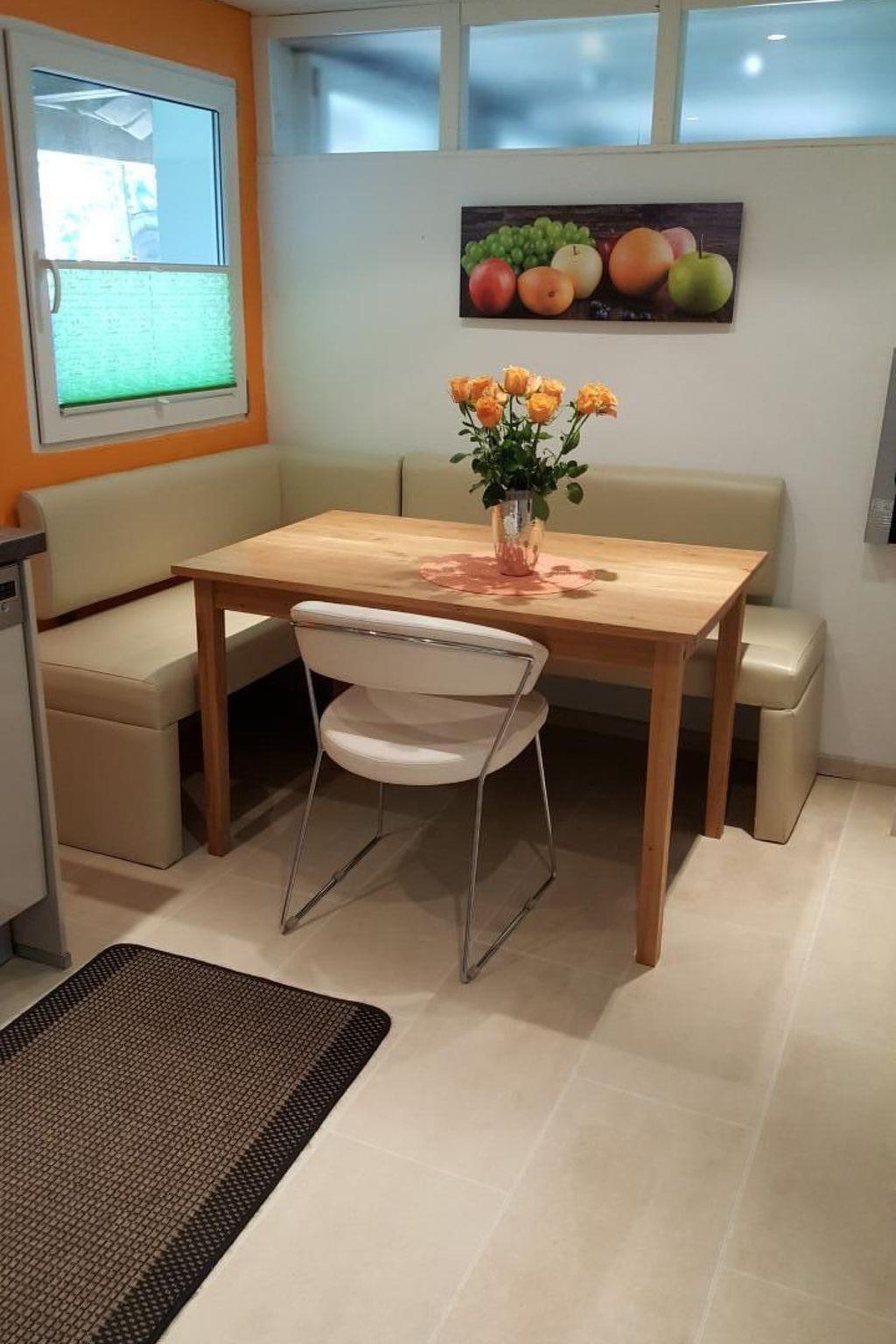 A fully equipped kitchen with a bright seating area allows for cosy cooking and get-togethers.