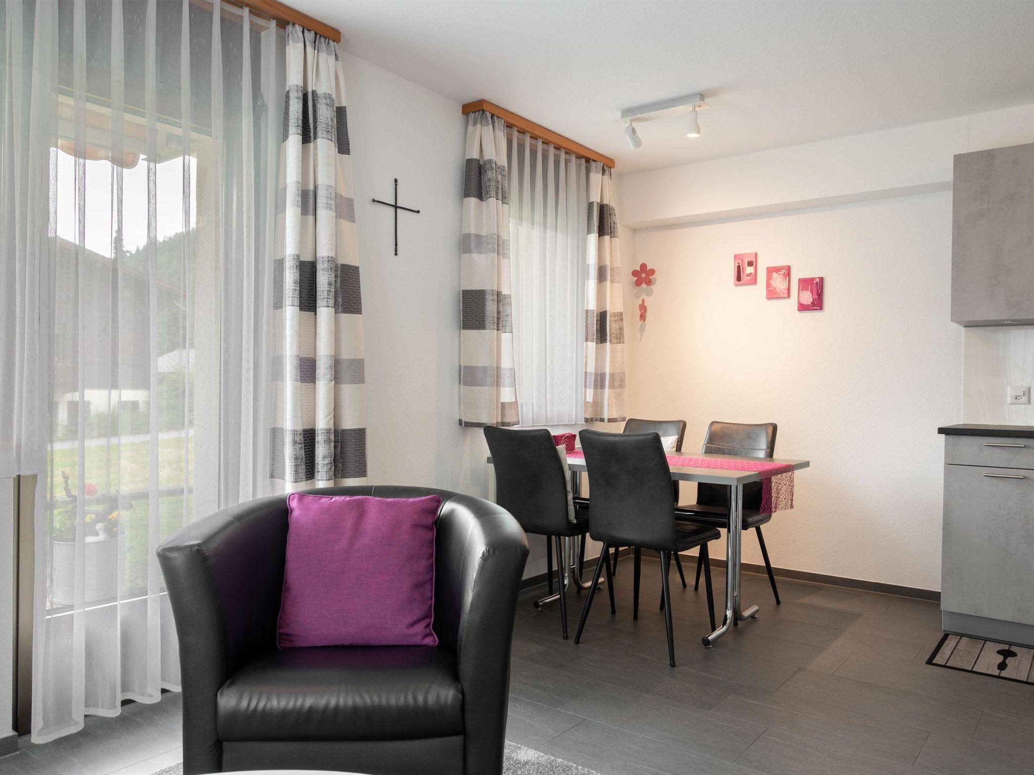 The apartment is modern and comfortably furnished. The bedroom features a double bed. The living area includes a TV, radio, CD player and internet connection. The kitchen with integrated dining area is fully equipped, including a coffee machine, kettle and toaster. A fondue set and a raclette oven are also available. A washing machine, dryer and iron in the adjacent room can be used for free.