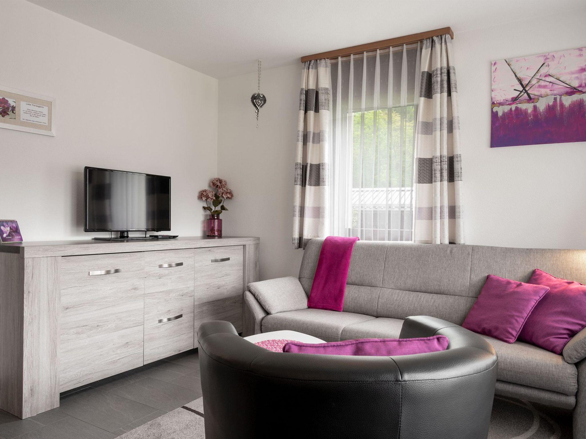 44 m2. More information by the provider: This cozy holiday apartment is located on the ground floor of a single-family home and is ideally suited for two people. The quiet surroundings as well as the large outdoor area with a sunbathing lawn and a covered barbecue area invite you to relax. From here, you can enjoy a beautiful view of the surrounding mountain landscape. A free parking space is available directly in front of the house.
