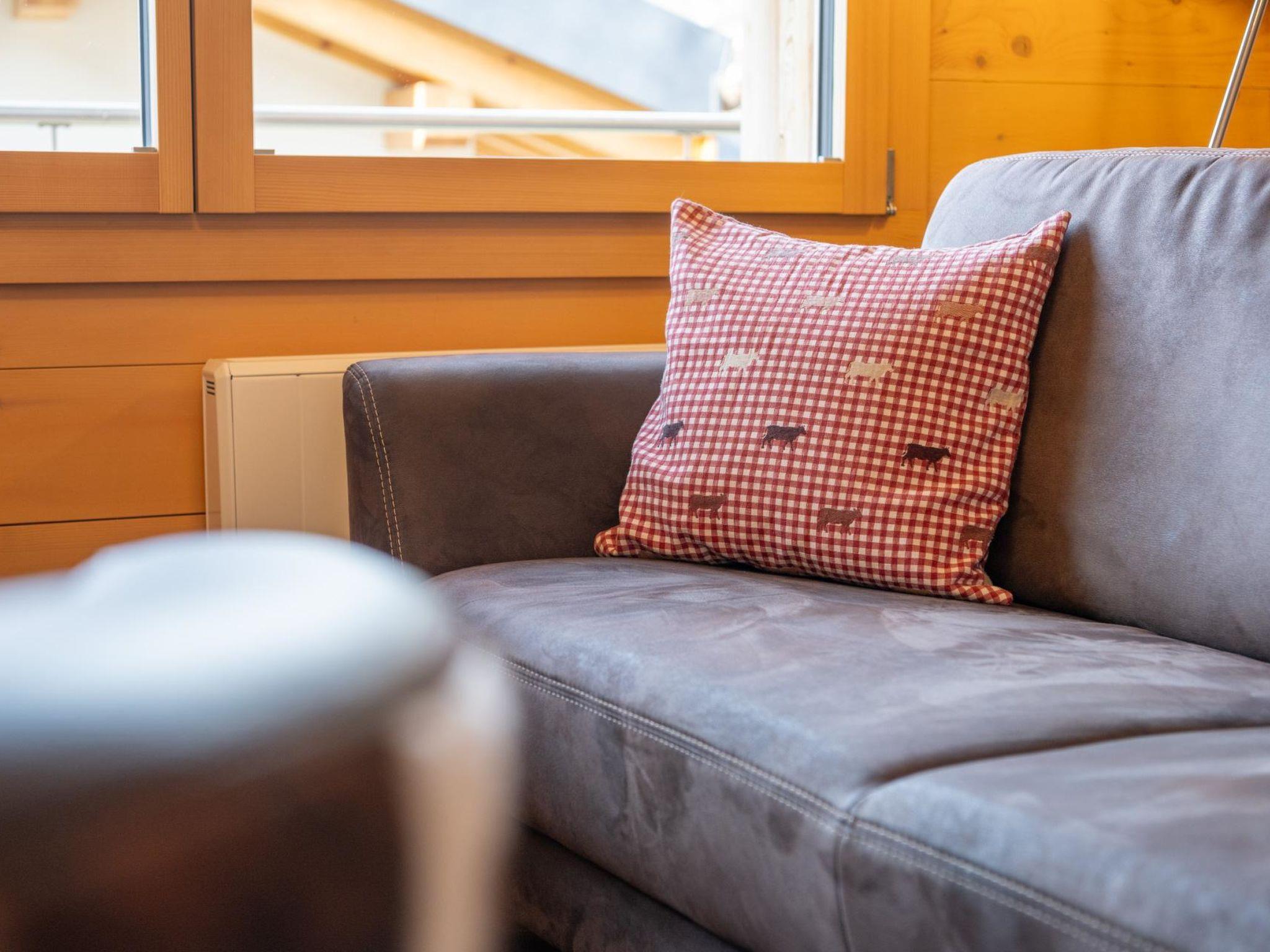 The holiday apartment has two bedrooms with double beds, one of which measures 180x200 cm and has separate mattresses. The spacious, fully equipped kitchen offers, among other things, a Nespresso coffee machine, kettle, as well as a fondue and raclette set. The cozy living room is designed in an open style and is equipped with a sofa, dining table, flat-screen TV and a Swedish stove. An inviting window seat invites you to read and relax. Free Wi-Fi is available. The offer is complemented by a large sun terrace that provides additional space to stay.