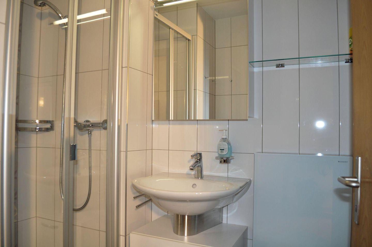 Die Wohnung verfügt über 2 kürzlich renovierte Badezimmer. Ein Badezimmer ist mit Toilette, Waschbecken und Dusche ausgestattet, während das andere über eine Toilette, ein Waschbecken und eine Badewanne verfügt.