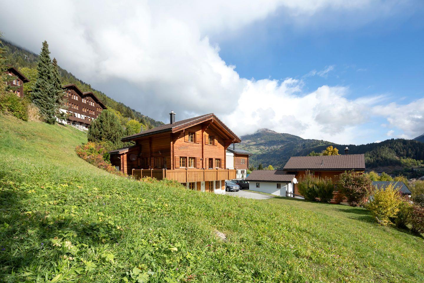 Charmantes Chalet Cresta in Fiesch – freistehend, mit Blick auf die Walliser Alpen