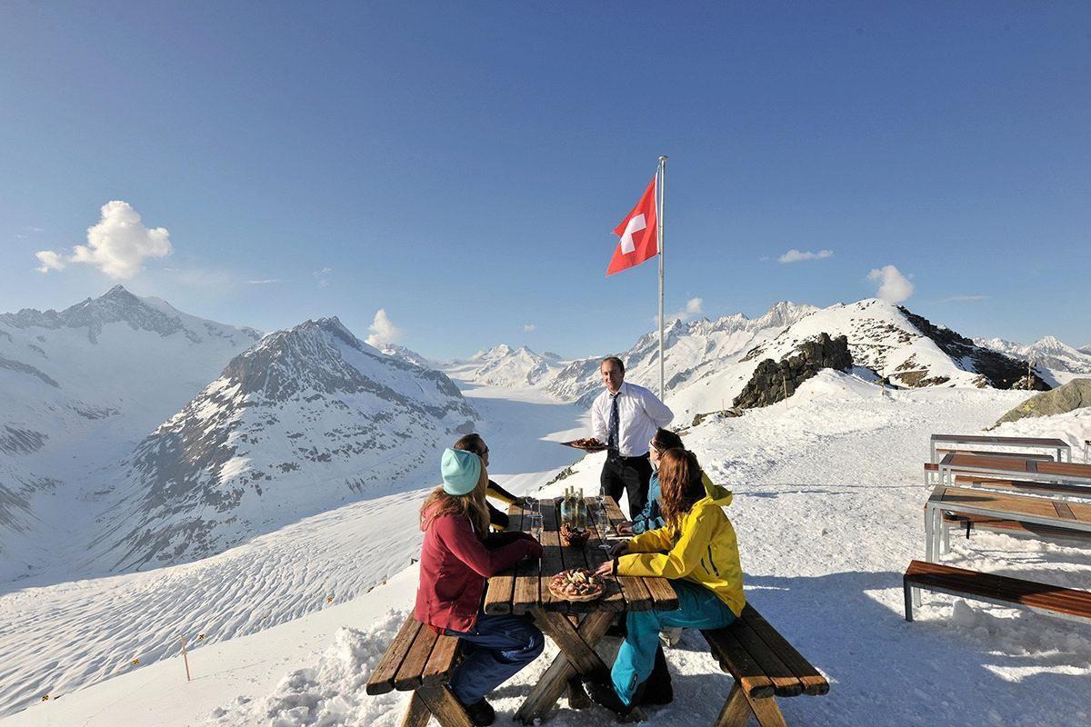 Das Aletschgebiet mit seinem 23km langen Aletschgletscher und die Sicht zu den Walliser sowie den Berner 4000er Gipfeln ist immer wieder atemberaubend.