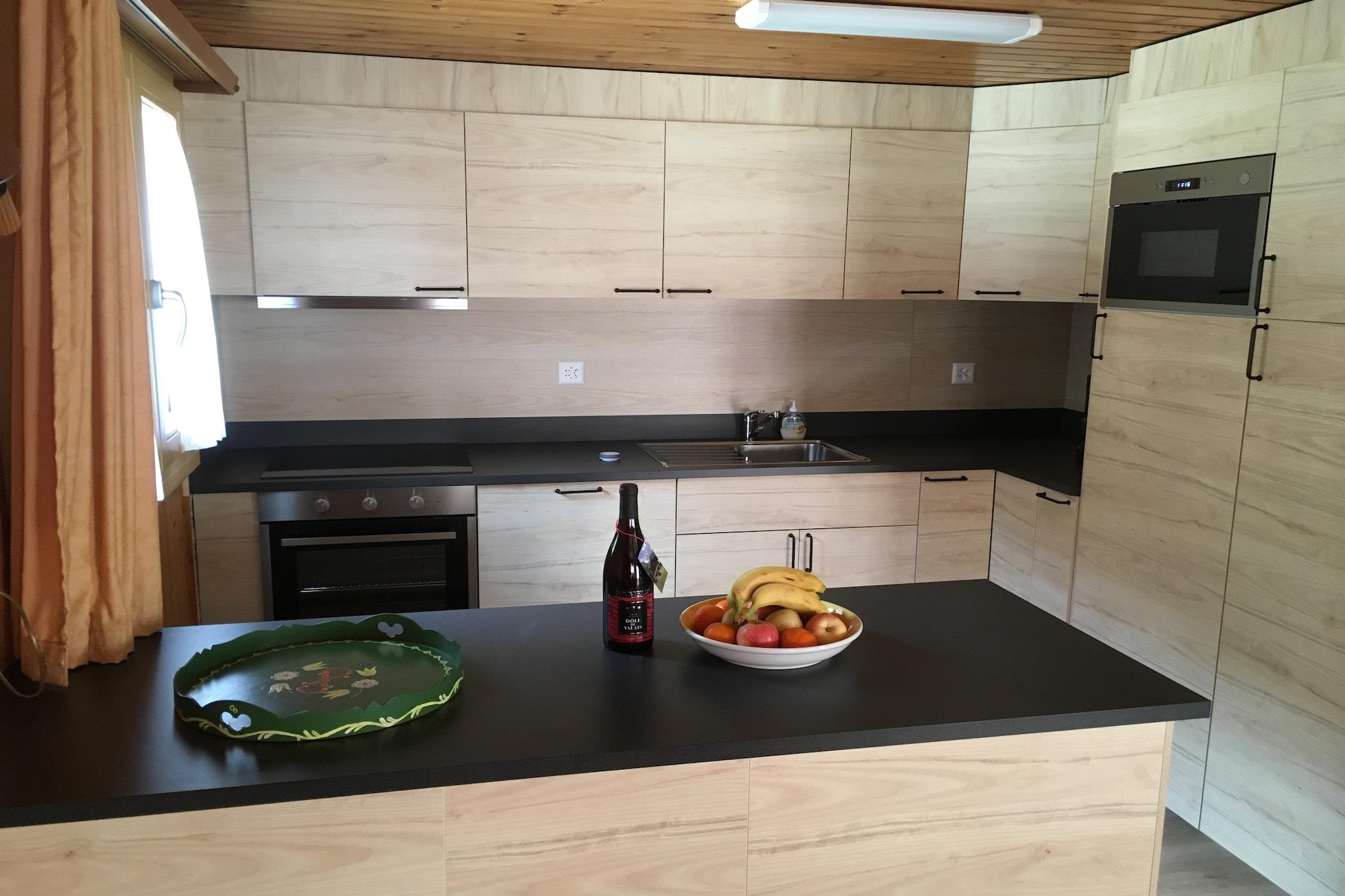 The Chalet Kirsanna is ideal for a maximum of 6 people. It is located in the peaceful Fieschertal (1100 m altitude) at the end of the Alpine Road. That's why there is only local traffic here. The chalet is on flat terrain and your car can be parked right in front of the door. Your apartment is approximately 128 m2 and is located on the first and second floor. It has a spacious living room with an open kitchen, 3 bedrooms with two beds each, a bathroom with a shower and toilet and a bathroom with a bath and toilet. It offers the necessary comforts such as cable TV, DVD player, internet connection (Wi-Fi), washing machine and a sunny balcony with a beautiful view.