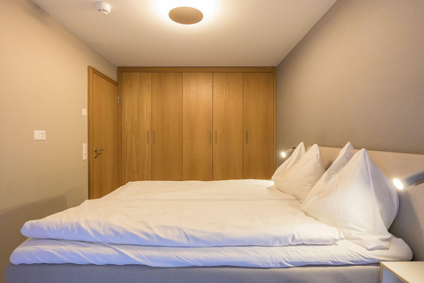 Gemütlicher Wohnraum mit offener, voll ausgestatteter Küche (Geschirrspüler, Herd, Backofen, Kühlschrank, Kaffeemaschine und Kochutensilien), ein Schlafzimmer (ein Doppel-Boxspringbett) und ein Schlafsofa im Wohnzimmer sowie einem Badezimmer mit Dusche und WC. Waschmaschinen und Trockner befinden sich zu gemeinschaftlichen Nutzung im Untergeschoss des Hauses gegen Gebühr. Ein Skiraum sowie ein ein separater Fahrradraum stehen ebenfalls zur Verfügung.