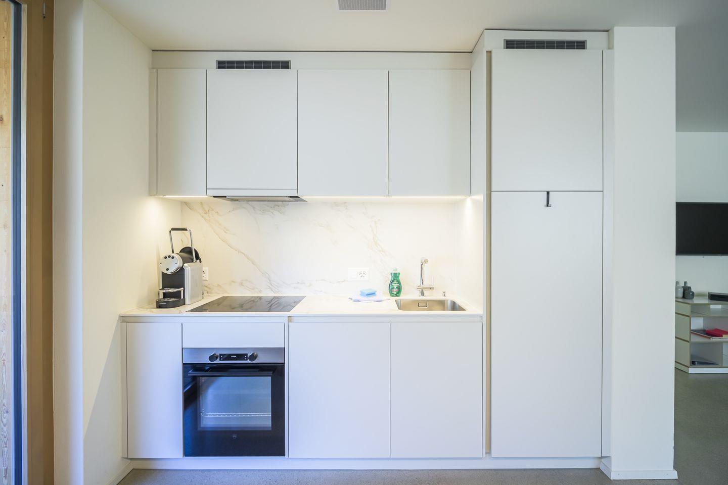 Gemütlicher Wohnraum mit offener, voll ausgestatteter Küche (Geschirrspüler, Herd, Backofen, Kühlschrank, Kaffeemaschine und Kochutensilien), zwei Schlafzimmer (ein Doppel-Boxspringbett und zwei Einzelbetten) sowie einem Badezimmer mit Dusche und eine separate Toilette. Ein eigener Skischrank und ein Tiefgaragenparkplatz, Parkhöhe 2.20m) sind kostenlos nutzbar. Eine Waschmaschine und ein Trockner stehen Ihnen im Apartmetn kostenfrei zur Verfügung.