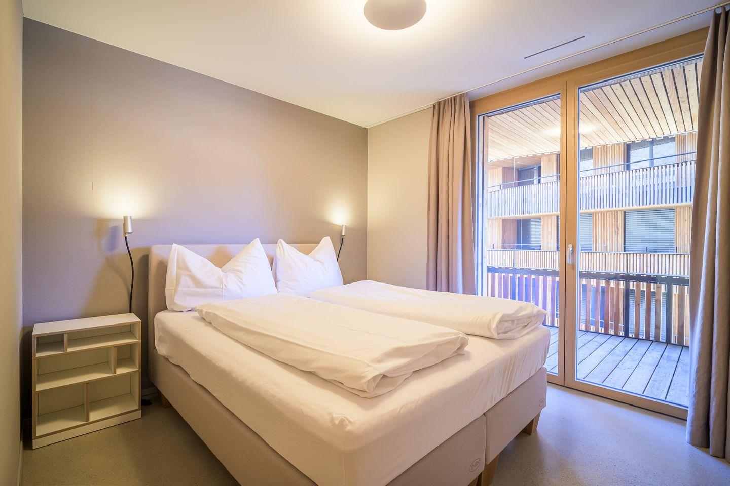 Moderne, helle 3.5-Zimmerwohnung (59?m²) direkt an der Talabfahrt Flims und beim Stenna Center mit Coop, Apotheke, Arzt, Physio, Kino, Restaurants und Shops. Für 4 Personen, mit zwei Schlafzimmern (1x Doppel-Boxspringbett, 2x Einzelbett), Badezimmer mit Walk-In Dusche, sep. WC. Offener Wohnraum mit voll ausgestatteter Küche (Geschirrspüler, Herd, Backofen, Kühlschrank, Kaffeemaschine). Waschmaschine & Trockner inklusive.