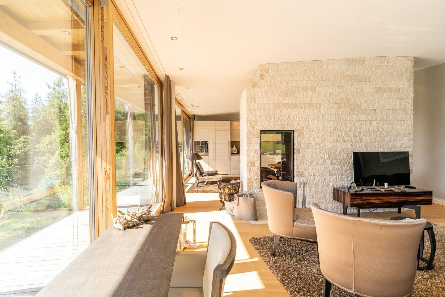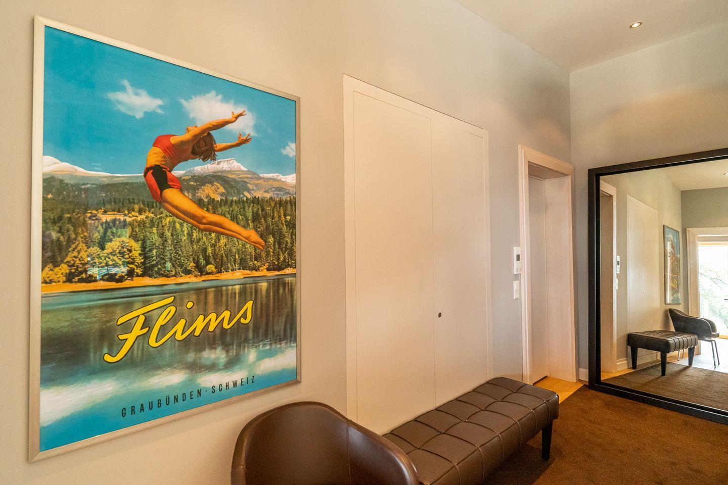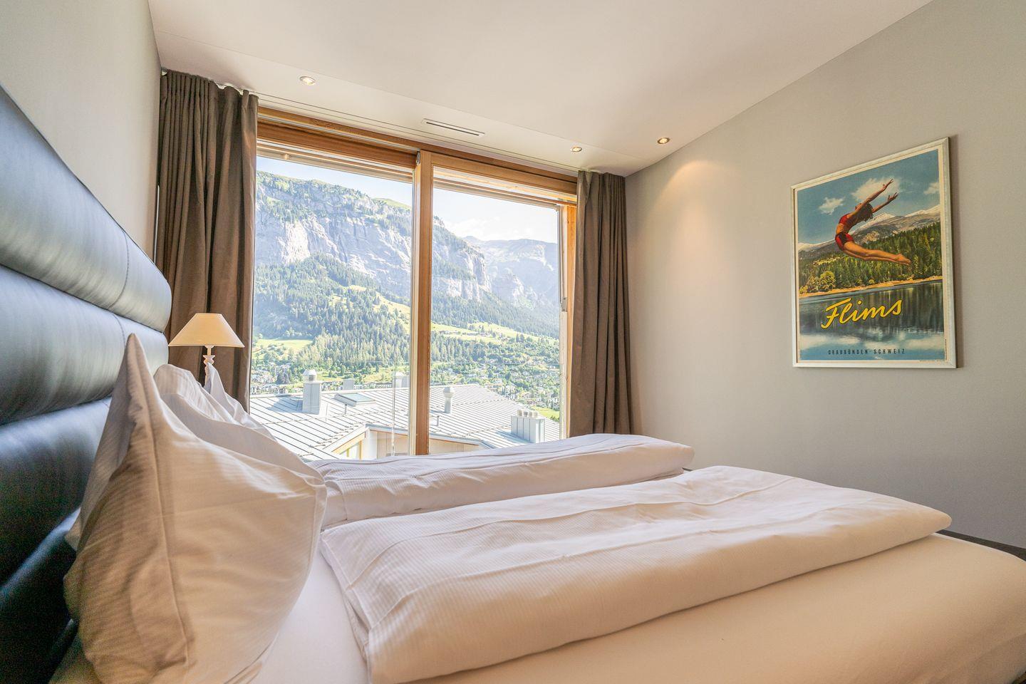 Luxuriöse 3.5-Zi.-Wohnung (ca. 134?m²) im 4. OG der Mountain Suites, nur 10 Gehminuten von der Talstation Flims entfernt. Für max. 4 Personen, mit 2 Schlafzimmern, jeweils mit eigenem Badezimmer. Grosszügiger Wohn-/Kochbereich mit Kamin, Esstisch und gemütlicher Couch. Hochwertige Küche mit Induktionskochfeld, Backofen, Kühlschrank mit Gefrierfach, Geschirrspüler und Nespresso-Maschine. Traumhafte Aussicht auf Tschingelhörner und Flimserstein.