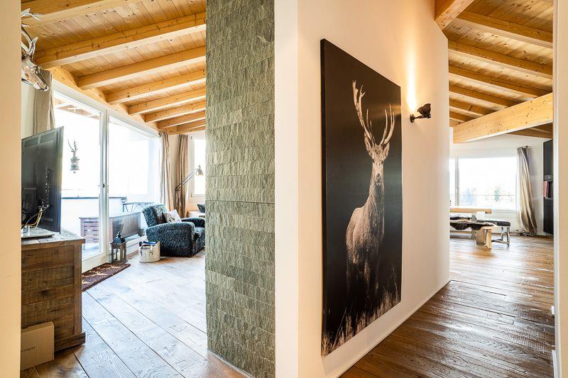 Die luxuriöse 4.5-Zimmer-Dachgeschosswohnung (ca. 150 m²) befindet sich in einem modernen Mehrfamilienhaus in Flims Waldhaus und bietet einen fantastischen Blick auf die Flimser Bergwelt. Das Apartment verfügt über 3 Schlafzimmer: Zwei sind mit Doppelbetten ausgestattet, das dritte (Kinderzimmer) mit einem Einzelbett, das ausziehbar ist, sowie einem Hochbett, das über eine Leiter erreichbar ist. Ideal für Familien, die Komfort und Natur genießen möchten.