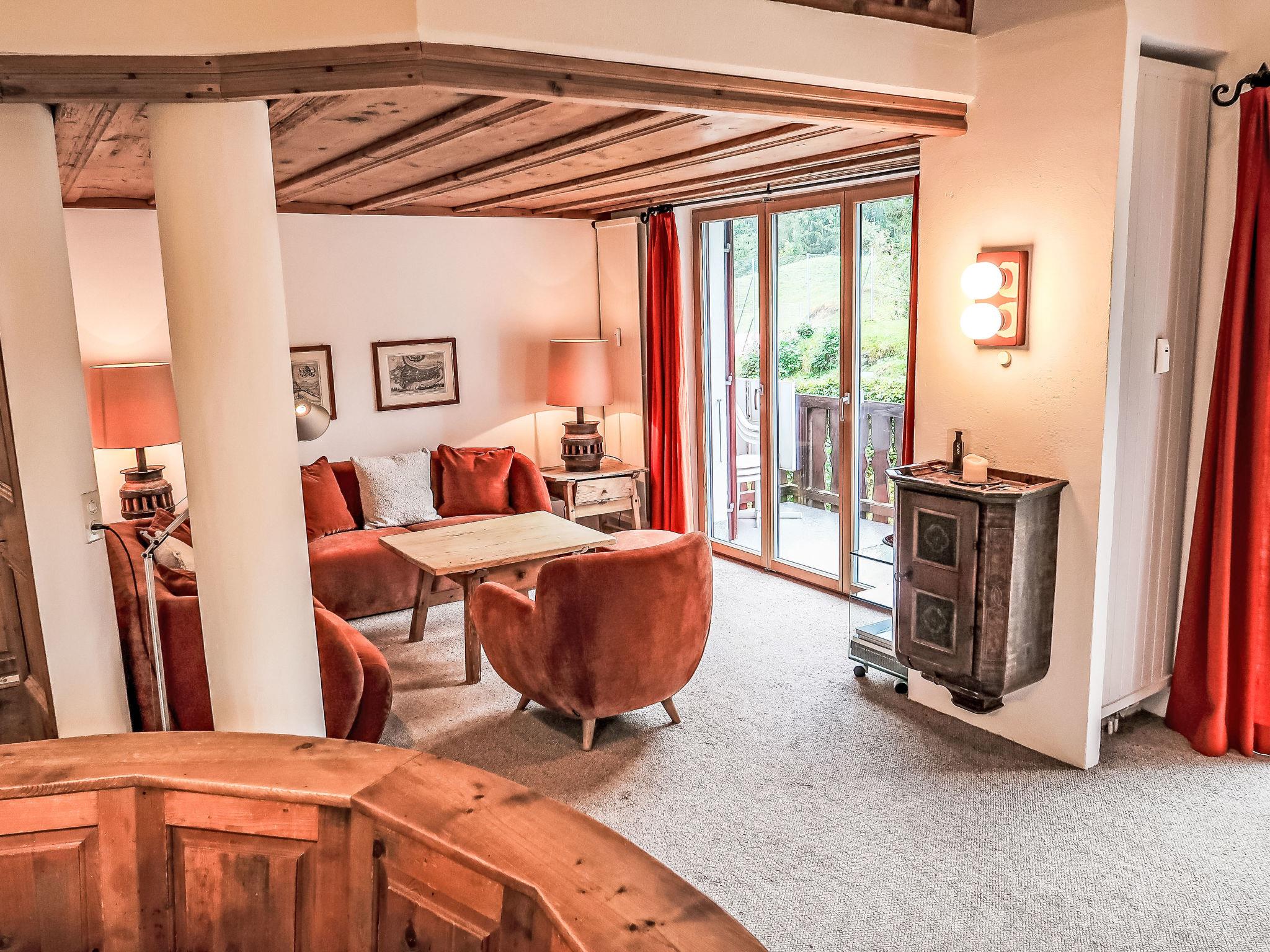 "Villa Waldpark", 5-room maisonette 85 m2 on 2 levels on 1st floor. Comfortable and cosy furnishings: living/dining room with satellite TV (flat screen). Exit to the balcony. 1 room with 1 double bed (160 cm, length 185 cm). 1 children's room with 1 x 2 bunk beds (90 cm, length 185 cm). Open kitchen (oven, dishwasher, 4 induction hot plates, kettle, electric coffee machine, Capsules for coffee machine (Nespresso) extra, raclette grill, fondue Set (chinoise, cheese)) with dining table. Bath/WC. Upper floor: gallery. 1 room with 1 double bed (180 cm, length 185 cm). Shower/WC. Balcony 10 m2, south facing position. Balcony furniture, deck chairs (1). Beautiful view of the mountains and the countryside. Facilities: washing machine. Internet (WiFi, free). Garage space n 7 (1 car). Please note: suitable for families. Non-smokers only.