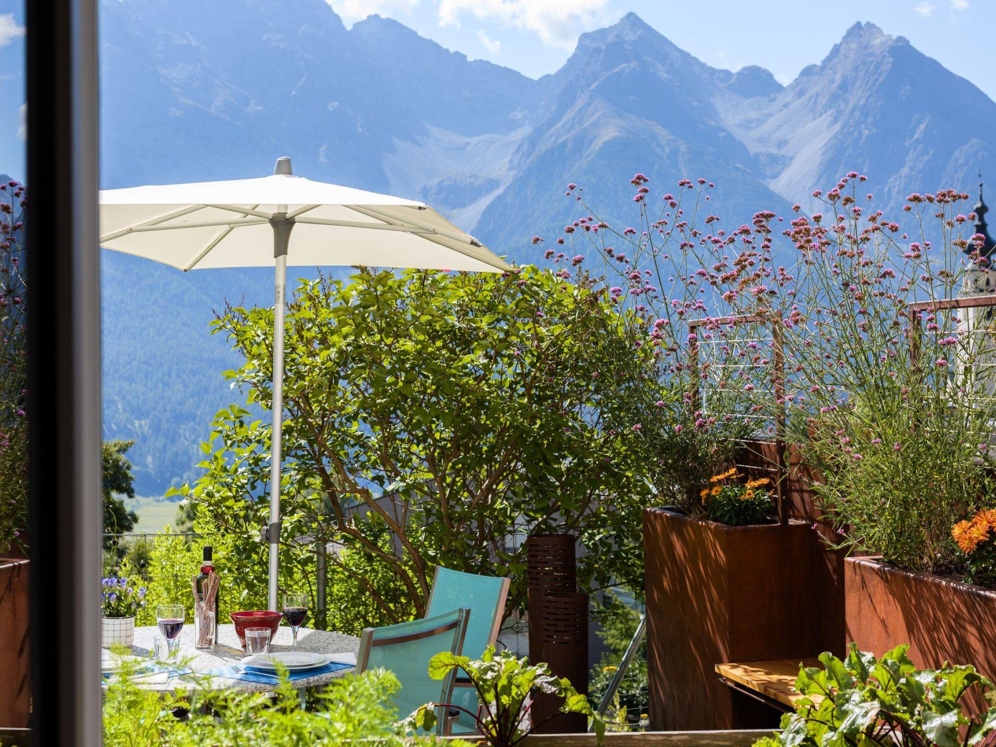 Discover the charm and beauty of our holiday home, situated on a sun-drenched high plateau at 1650 metres above sea level. Enjoy the unobstructed view of the impressive mountain panorama of the Lower Engadine Dolomites and the peaceful atmosphere that surrounds our home. Equipped with a sunny garden seating area, this is the ideal place for those seeking relaxation and nature lovers.