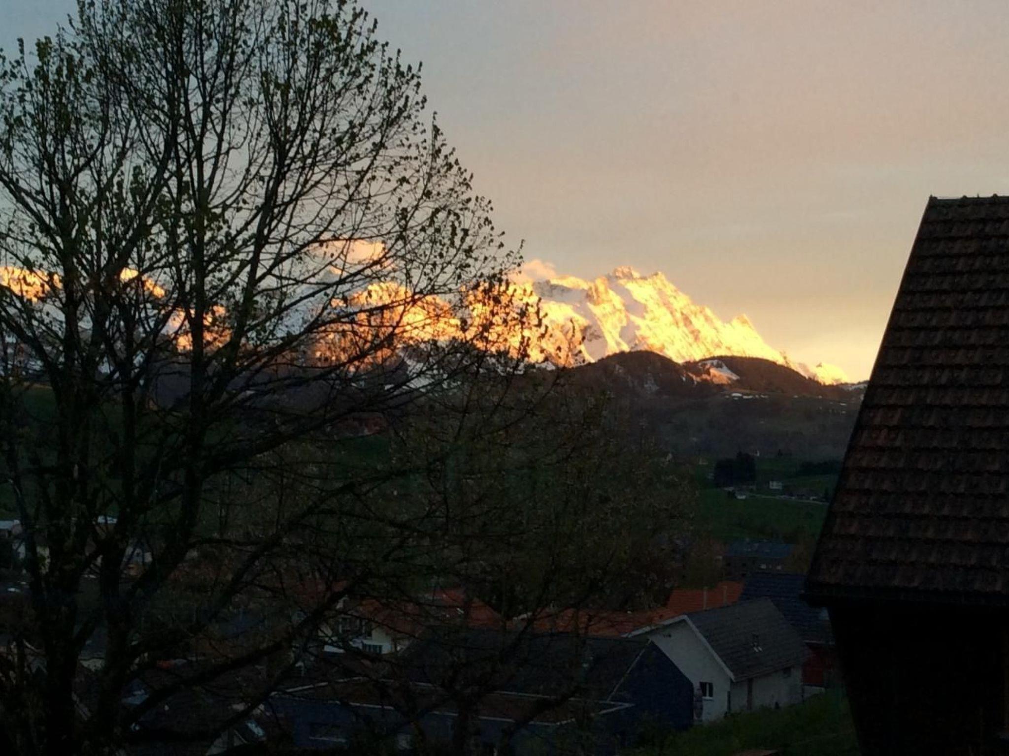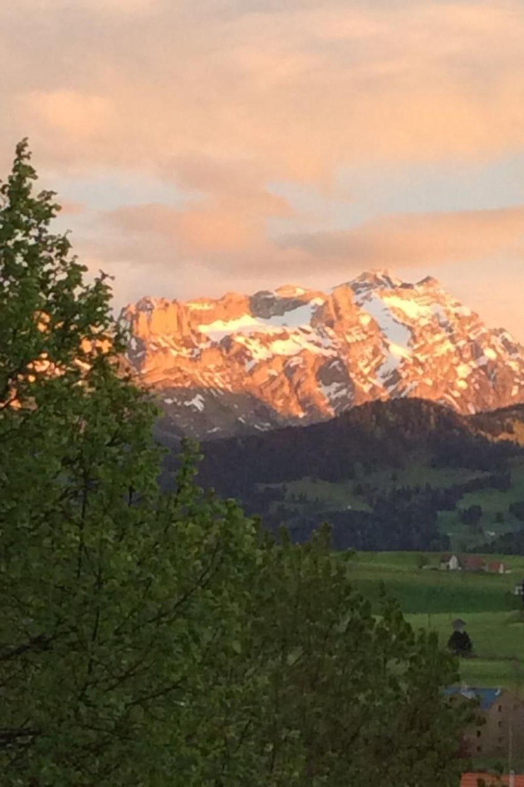 Despite its central location, the flat is very quiet. The many windows allow a view of the majestic Alpstein mountains and flood the room with sunlight. One exit leads directly into the garden. A seating area and deckchairs invite you to relax. A barbecue area is also available.