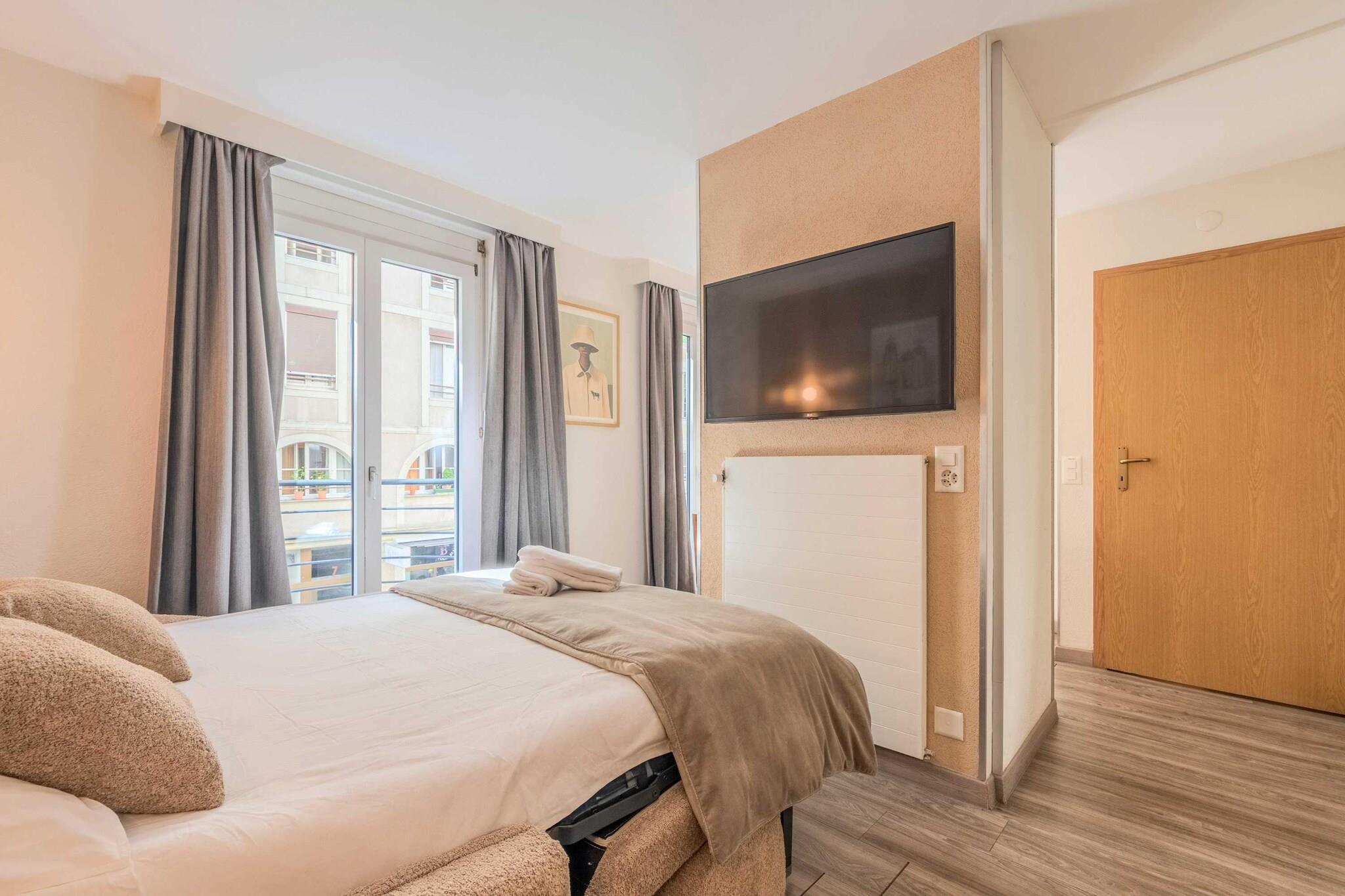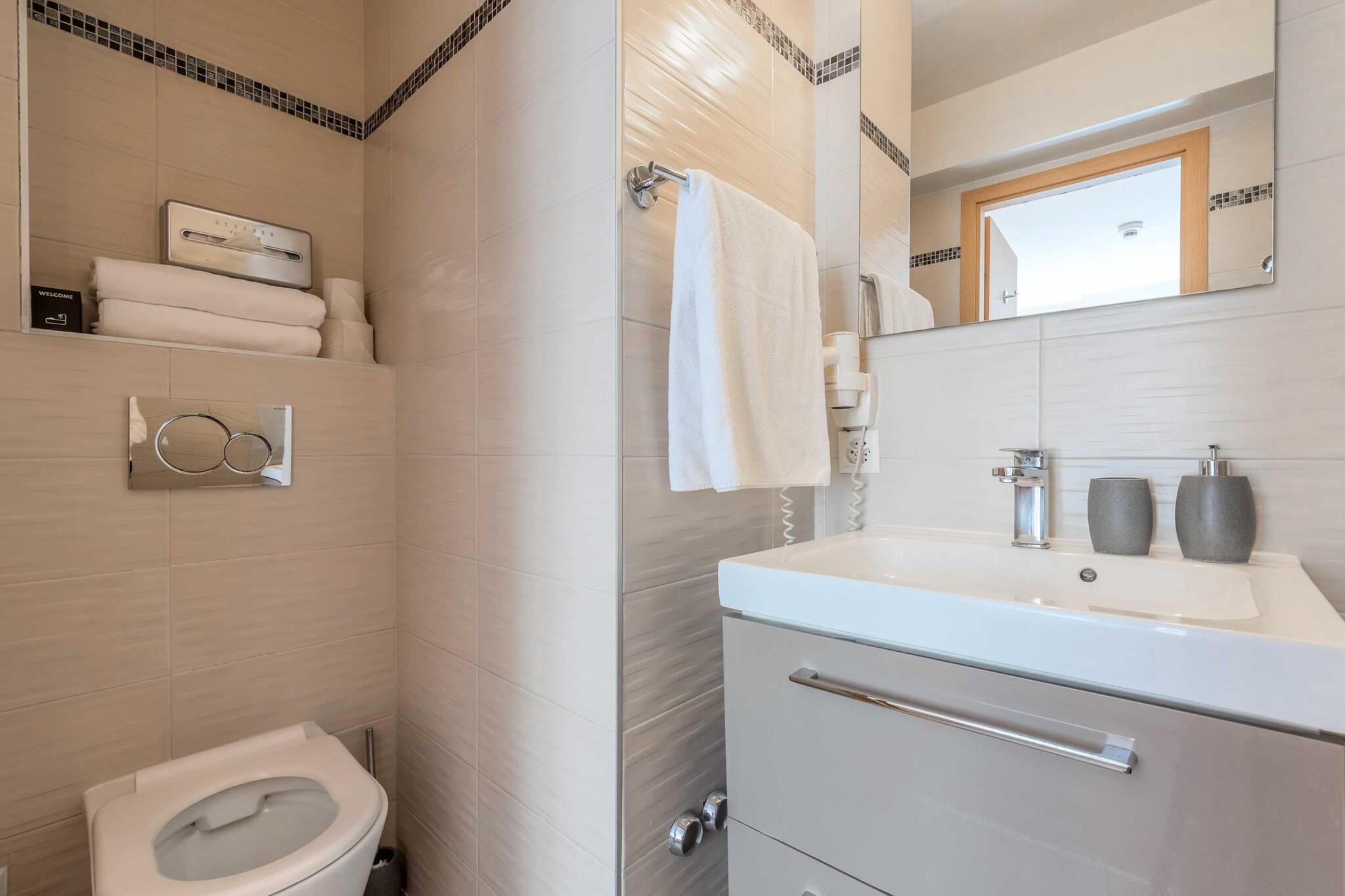 På 1. etage: (Stue(dobbeltsovesofa, Fjernsyn(fladskærm)), Køkken(spisebord, kogeplade, elkedel, kaffemaskine, combi-mikroovn, køleskab, elektriske kogeplader, , , Wine glasses), soveværelse(dobbeltseng, Fjernsyn, ), badeværelse(bruser, håndvask, toilet, føntørrer, , )) klimaanlæg, strygejern, , Extra pillows and blankets
