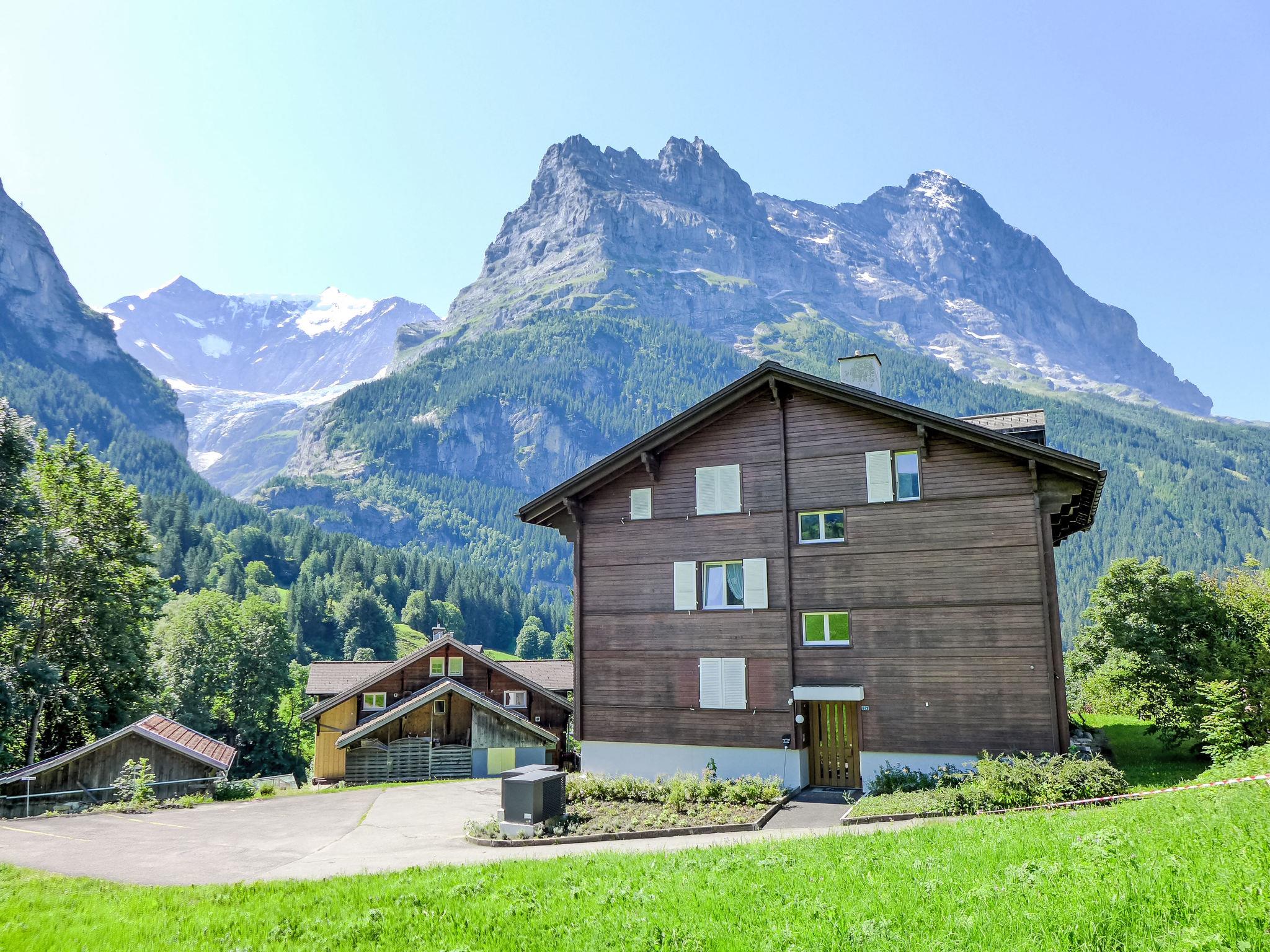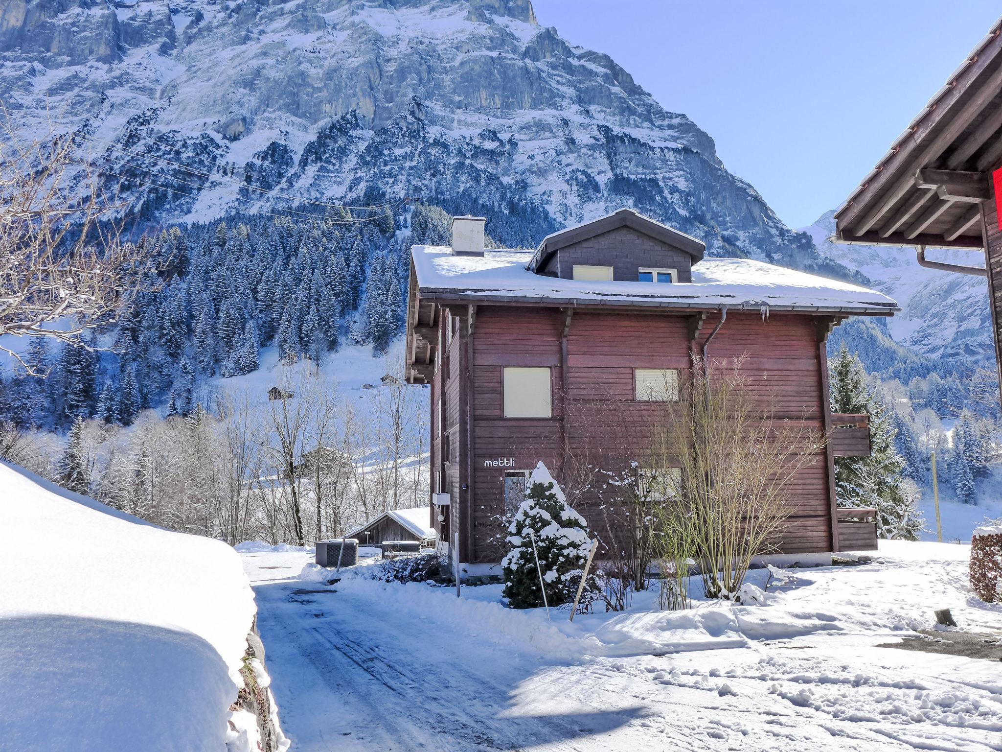 Simple apartment house "Chalet Mettli", 3 storeys, surrounded by meadows. In the district of Graben, 300 m from the centre, in a quiet position in the residential district, in a cul-de-sac, south facing position. In the house: storage room for skis, central heating system, washing machine, tumble dryer (for shared use, extra). Motor access to the house. In Winter: please take snow chains. Single garage at the house. Shop 700 m, supermarket 1 km, restaurant, bar 300 m, bakery 300 m, bicycle rental 500 m, 5 minute walk to the centre, bus stop "Pfingsteggbahn" 60 m, railway station "Grindelwald Dorf" 1.1 km, outdoor swimming pool 2.1 km, indoor swimming pool 1 km. Golf course (9 hole) 800 m, tennis 500 m, minigolf 500 m, sports centre 1 km, gondola lift, ski rental 500 m, ski bus stop 100 m, cross country ski track 500 m, children's playground 900 m. Well-known lakes can easily be reached: Thuner-/Brienzersee 18 km. Please note: no lift. Ski bus (free of charge). Free ski bus service to the ski region First, Männlichen, Kleine Scheidegg. The keys‘ handover takes place by the agency Interhome in Grindelwald, 1 km. Neighbourhood highly sensitive to noise. Quietness and good behaviour expected.