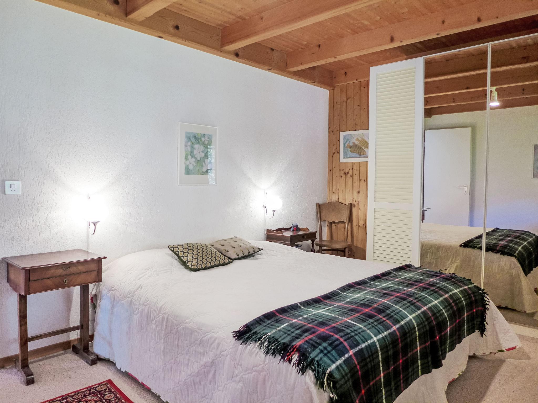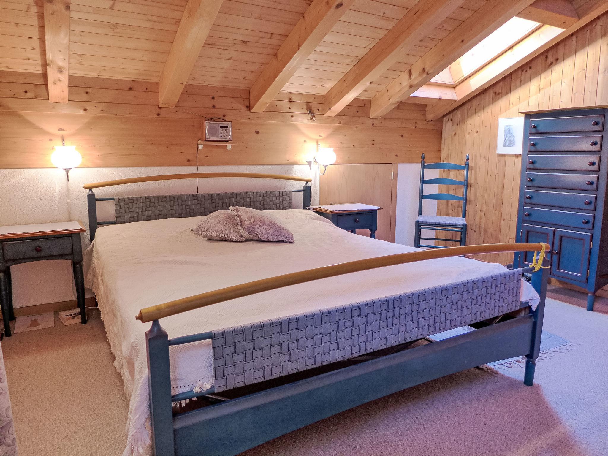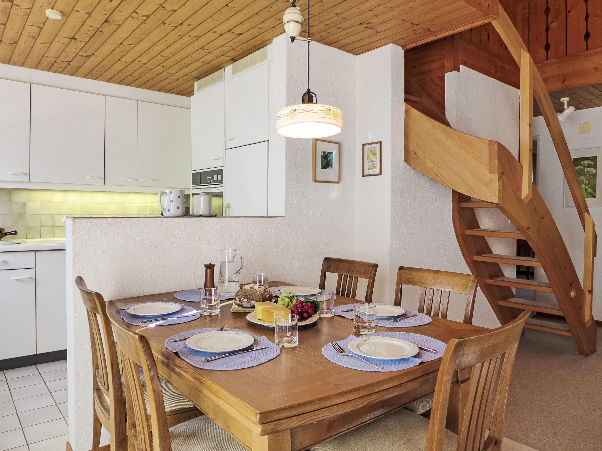 "Heidi", 4-room maisonette 120 m2 on 2 levels, on the top floor, south facing position. Spacious and bright, partly with sloping ceilings, partly renovated in 2023, very comfortable and cosy furnishings: open living room with open-hearth fireplace (only for decoration), dining table, radio and CD-player. Exit to the balcony. 1 room with 1 french bed (160 cm, length 200 cm). 1 small room with 1 bed (120 cm, length 200 cm). Open kitchen (oven, dishwasher, 4 ceramic glass hob hotplates, toaster, kettle, electric coffee machine, Capsules for coffee machine (Nespresso) extra, raclette grill, fondue Set (cheese)). Shower/WC. Upper floor: (steep stair) open gallery with sloping ceilings with cable TV (flat screen). 1 large room with sloping ceilings with 1 french bed (160 cm, length 200 cm), shower/WC. Carpet. South facing position and west facing position. Balcony furniture. Marvellous panoramic view of the mountains and the countryside. Facilities: hair dryer. Internet (WiFi, free). Parking space n 18, height 200 cm. Please note: suitable for families. Non-smokers only, non-smoking house. No lift.
