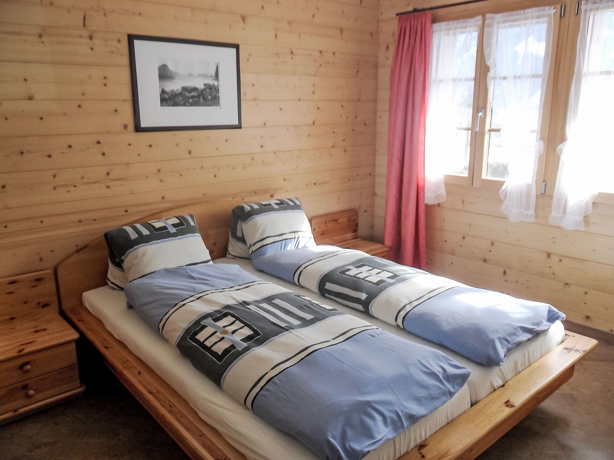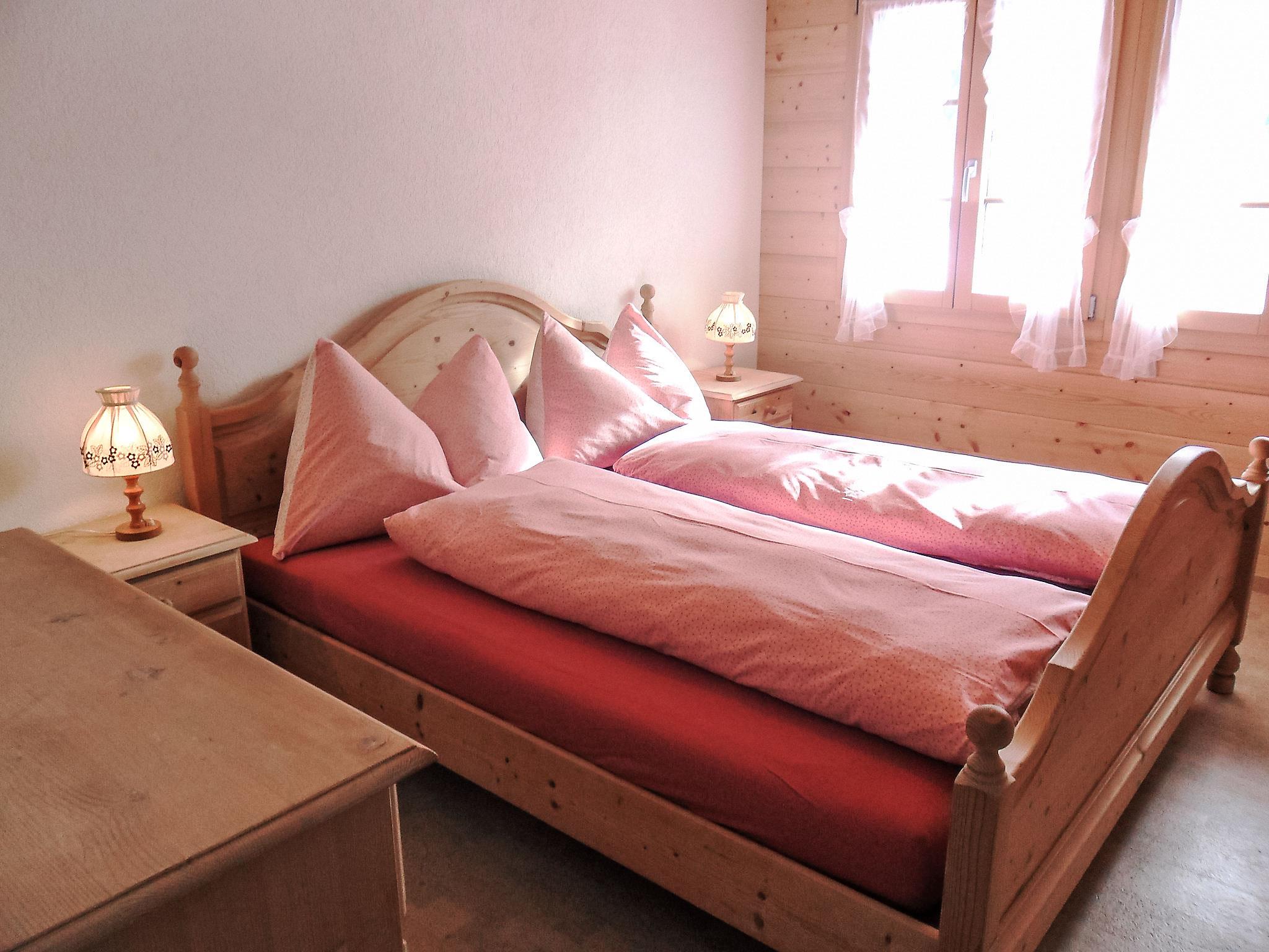 5-room apartment 120 m2, on the ground floor, south facing position. Spacious and bright, comfortable and cosy furnishings: living/dining room with Scandinavian wood stove and satellite TV (flat screen), radio and CD-player. Exit to the terrace. 3 double bedrooms (2 x 80 cm, length 200 cm). Open kitchen (oven, dishwasher, 4 ceramic glass hob hotplates, toaster, kettle, electric coffee machine, raclette grill, combination microwave, fondue Set (cheese)) with small bar. Bath/WC, shower/WC. Underfloor heating. Parquet floors. Patio, south facing position. Terrace furniture. Marvellous panoramic view of the mountains, the valley, the resort and Eiger. Facilities: Internet (WiFi, free). Parking at the house. Please note: non-smokers only. Fire extinguisher.