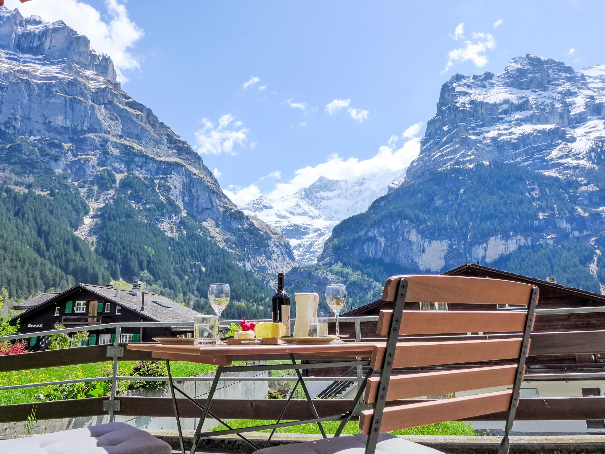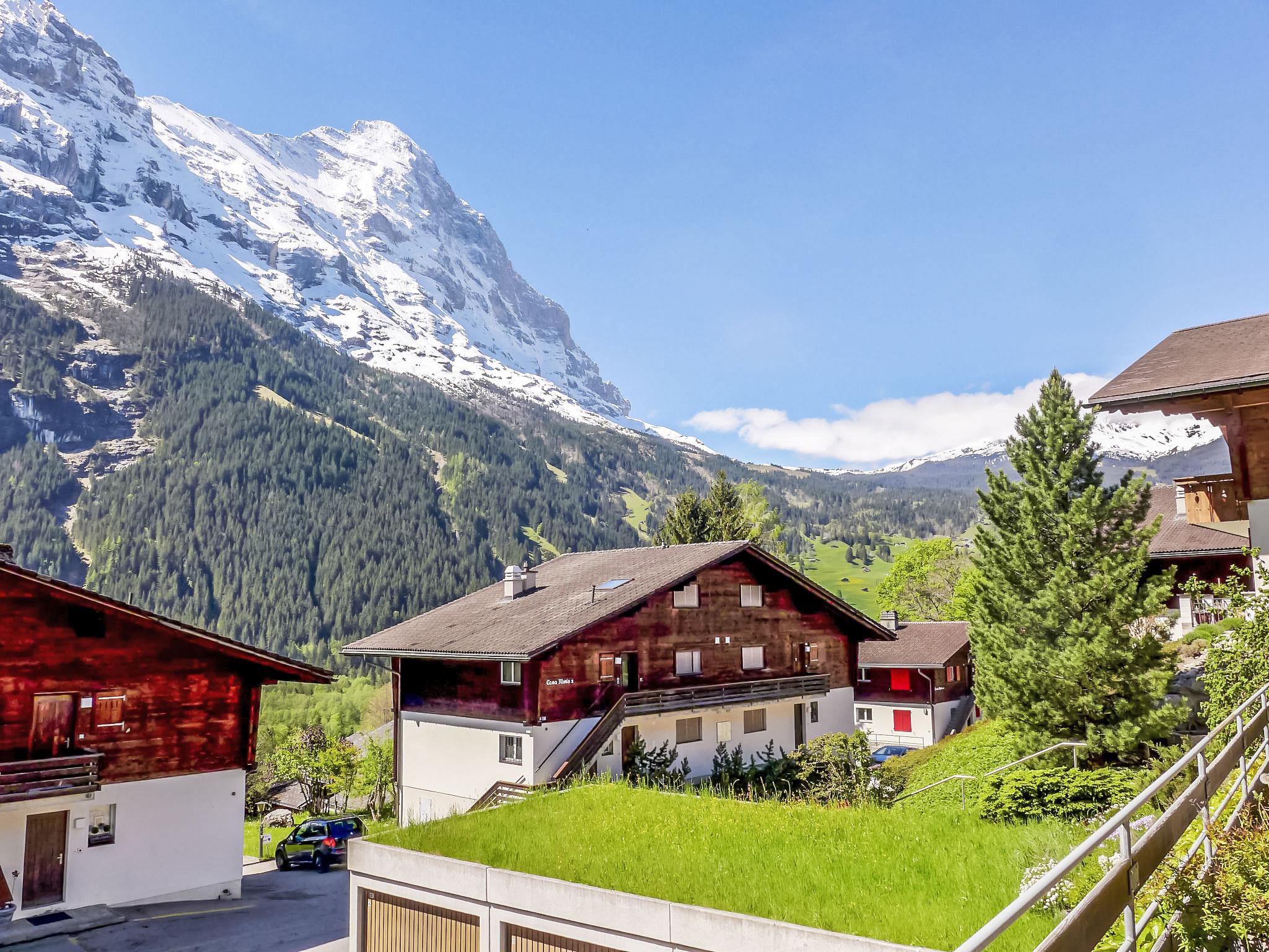 2-room apartment 45 m2, on the ground floor, south facing position. Spacious and bright, modern and cosy furnishings: open living/dining room with panoramic window with cable TV and digital TV (flat screen), radio. Exit to the terrace, south facing position. 1 room with 1 double bed (160 cm, length 200 cm). Open kitchen (oven, dishwasher, 4 ceramic glass hob hotplates, toaster, kettle, electric coffee machine, raclette grill, fondue Set (cheese)). Shower/WC. Underfloor heating. Parquet floors. Large terrace, south facing position. Terrace furniture, deck chairs. Marvellous panoramic view of the mountains, the countryside and Eiger. Facilities: iron, hair dryer. Internet (WiFi, free). Parking (1 car). Please note: non-smokers only. Private entrance.