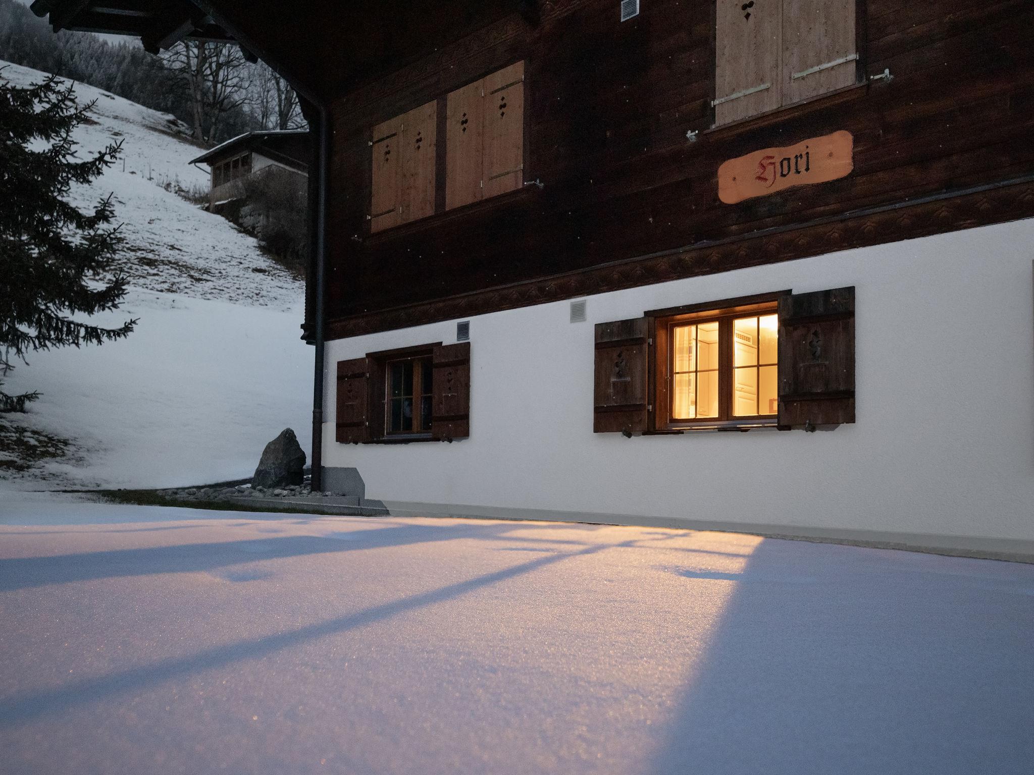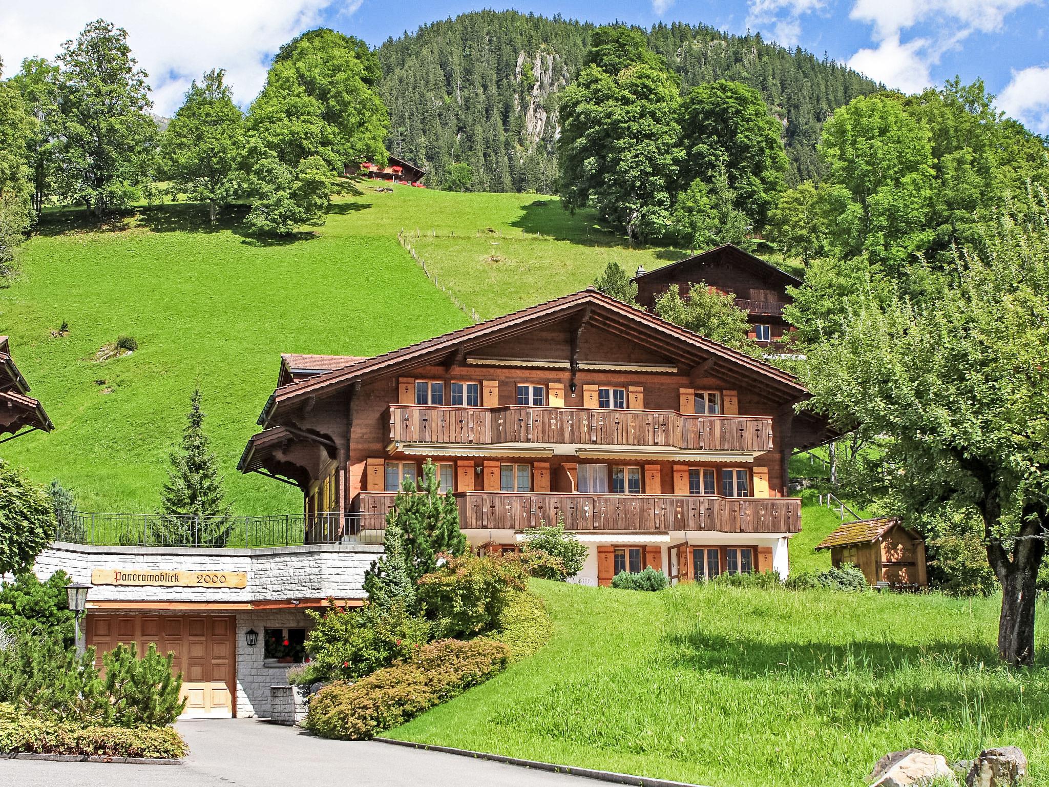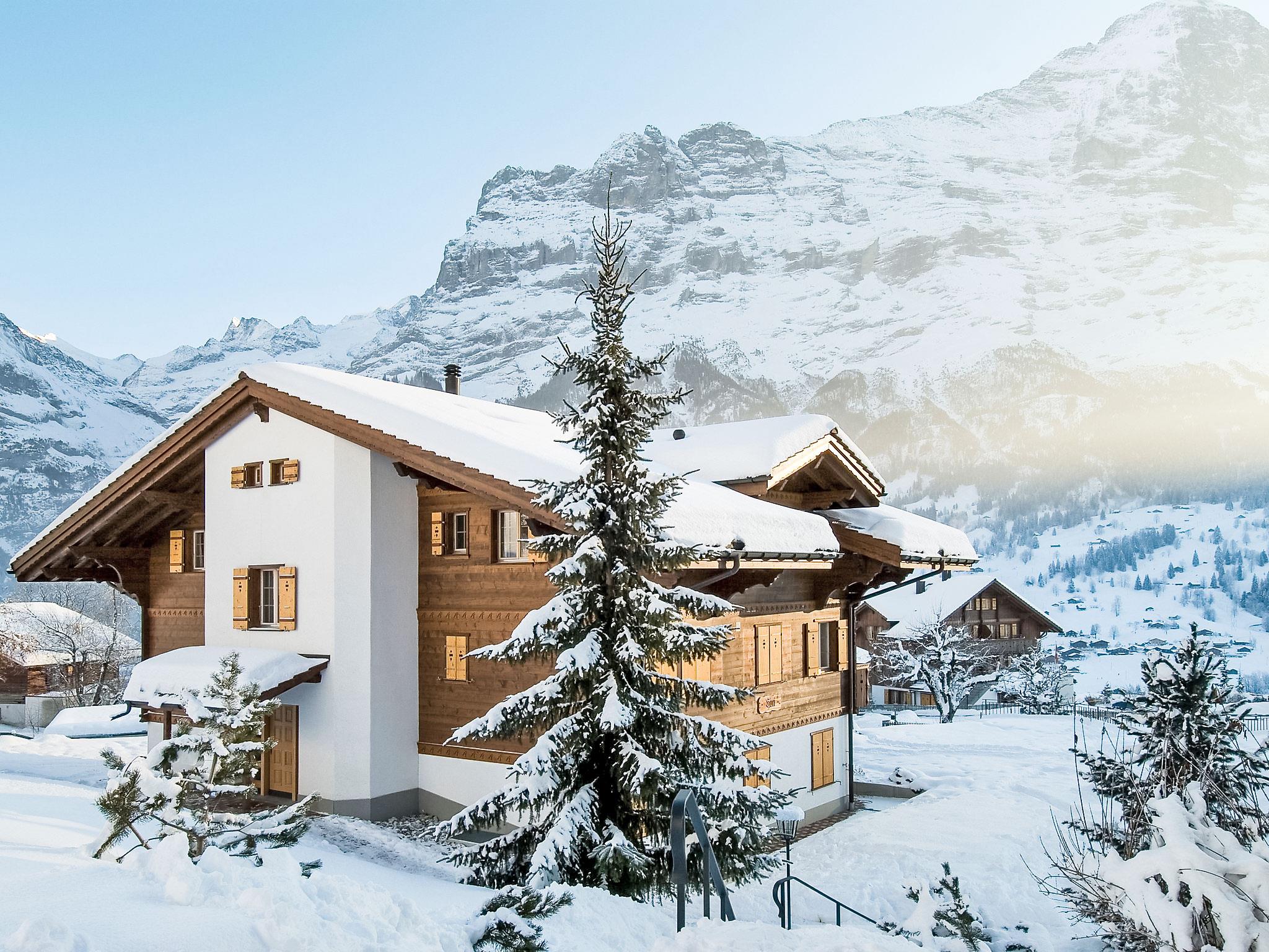 Very beautiful apartment house "Chalet Hori", detached. In the district of auf dem Stein, 1.4 km from the centre, in a quiet, sunny position, in the countryside, south facing position. In the house: lift, storage room for skis, central heating system, washing machine, tumble dryer (for shared use). Narrow motor access to the grounds. In Winter: please take snow chains. Communal covered parking. Grocery 400 m, shopping centre 1.4 km, restaurant 200 m, bicycle rental 1.8 km, bus stop "Stein" 20 m, railway station "Grindelwald Dorf" 1.4 km, outdoor swimming pool 2.8 km, indoor swimming pool 1.5 km. Golf course (9 hole) 3 km, tennis 2.5 km, minigolf 1.6 km, sports centre 1.5 km, gondola lift 1.8 km, ski rental 1.6 km, ski bus stop 20 m, cross country ski track 2.5 km, ice rink 1.5 km, children's playground 1.6 km. Well-known lakes can easily be reached: Thuner-/Brienzersee 20 km. Please note: ski bus (free of charge).