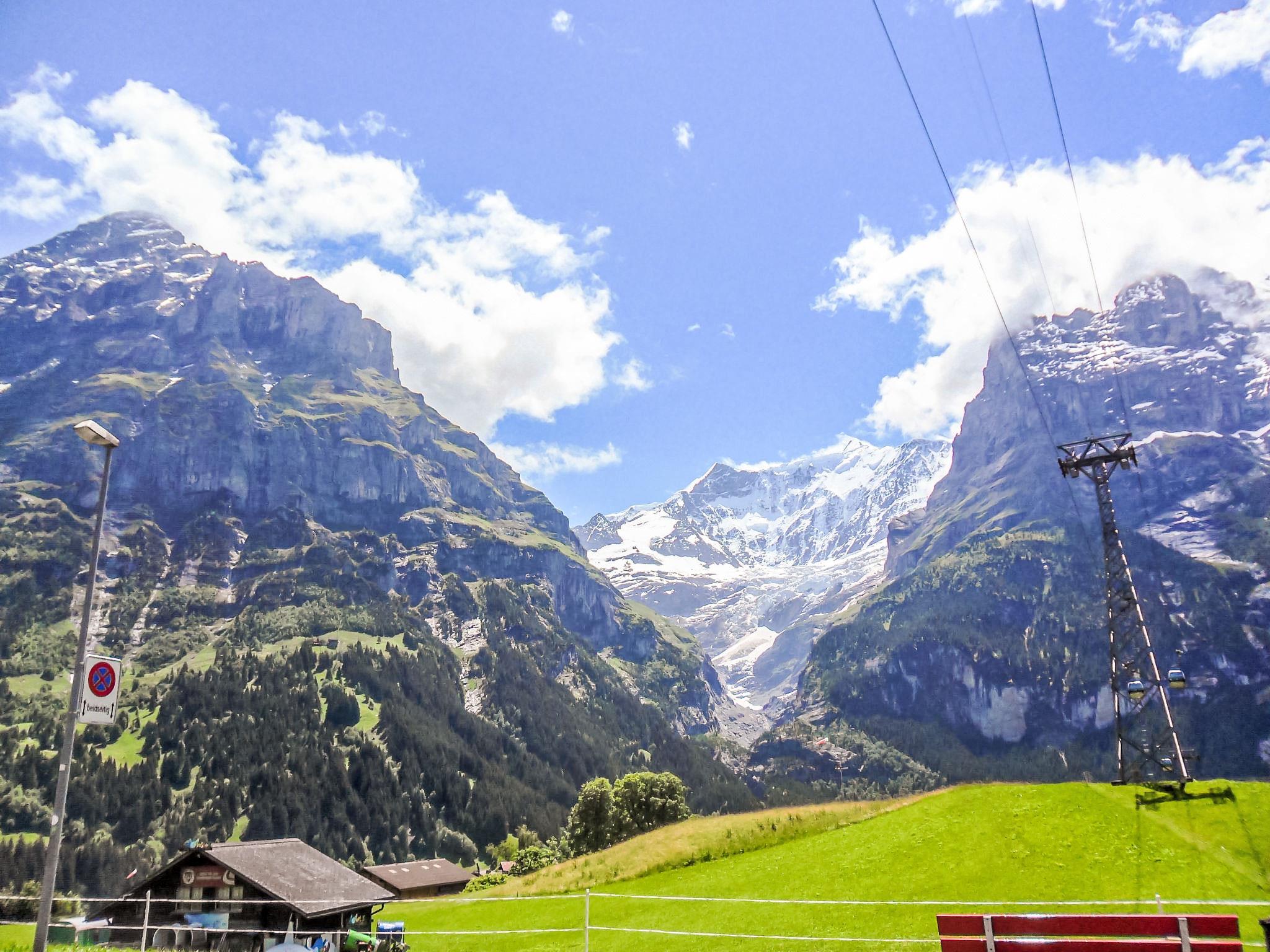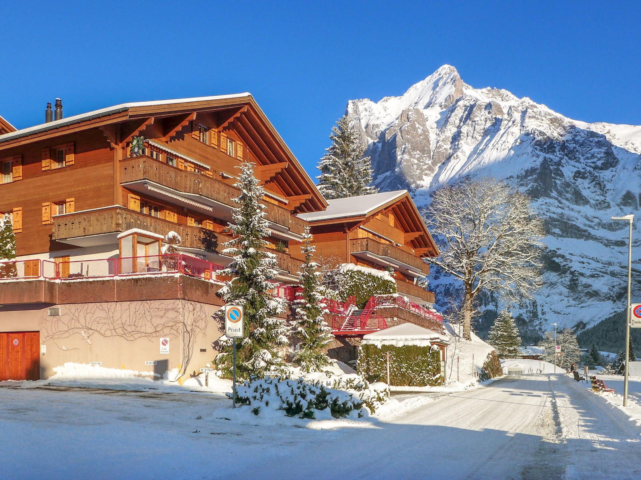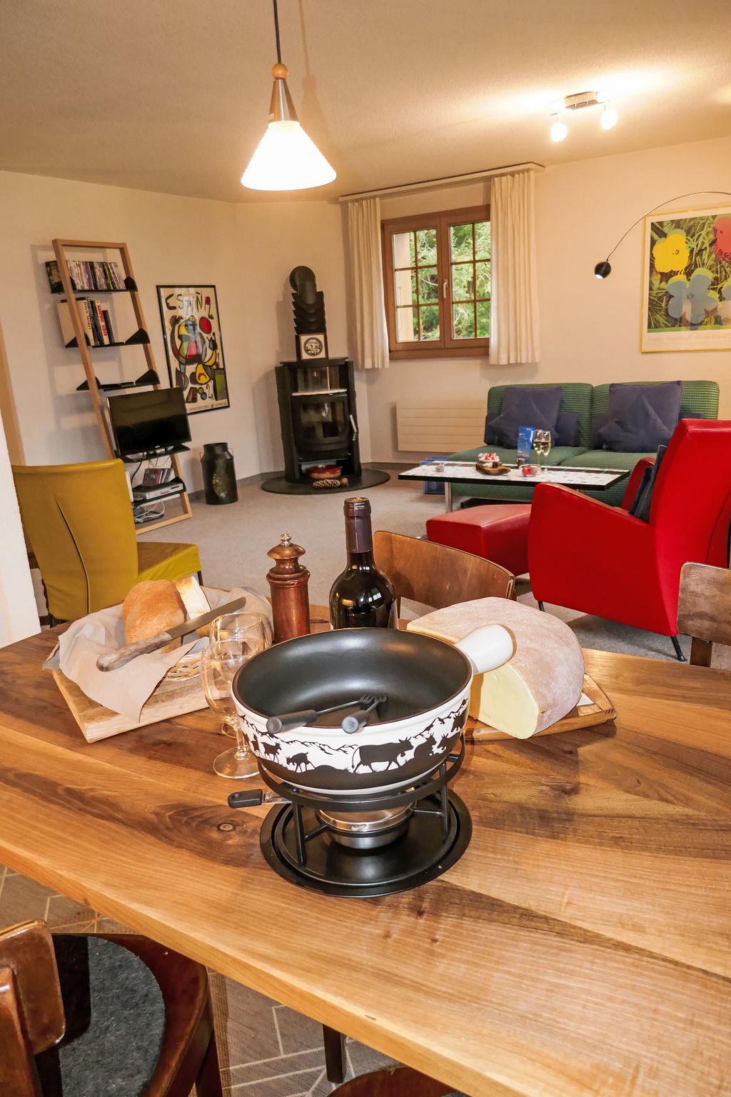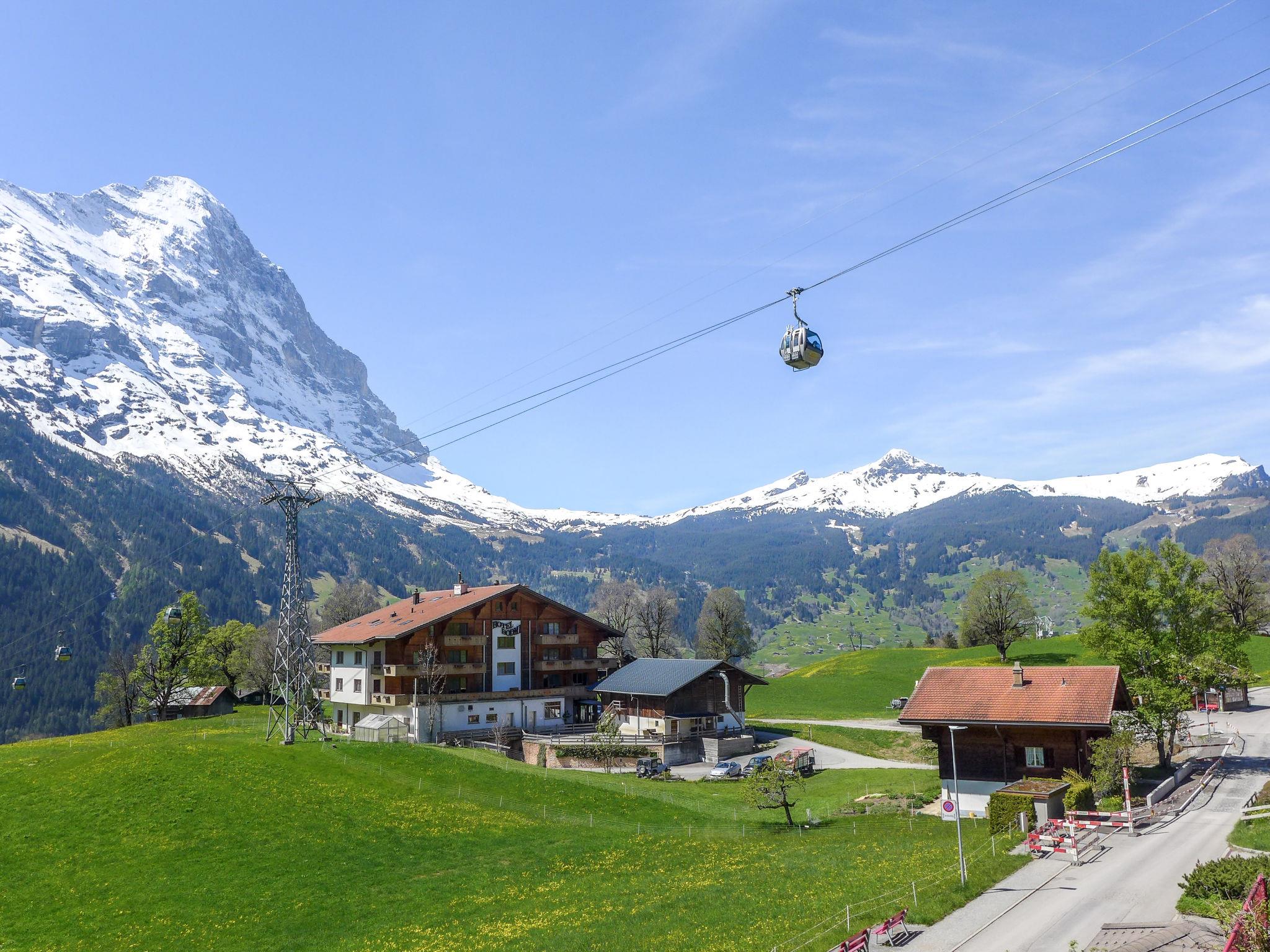 3-room apartment 70 m2, south facing position. Beautiful and cosy furnishings: living/dining room with Scandinavian wood stove and cable TV (flat screen), radio. Exit to the balcony, south facing position and west facing position. 1 room with 1 bed (160 cm, length 200 cm). 1 room with 1 x 2 bunk beds (90 cm, length 200 cm). Open kitchen (oven, dishwasher, 4 ceramic glass hob hotplates, toaster, kettle, electric coffee machine, fondue Set (cheese)). Bath/WC. Balcony 20 m2, south facing position and west facing position. Balcony furniture. Marvellous view of the mountains and Eiger. Facilities: logs (extra). Internet (WiFi, free). Garage space n 21, height 200 cm. Please note: non-smokers only. Fire extinguisher.