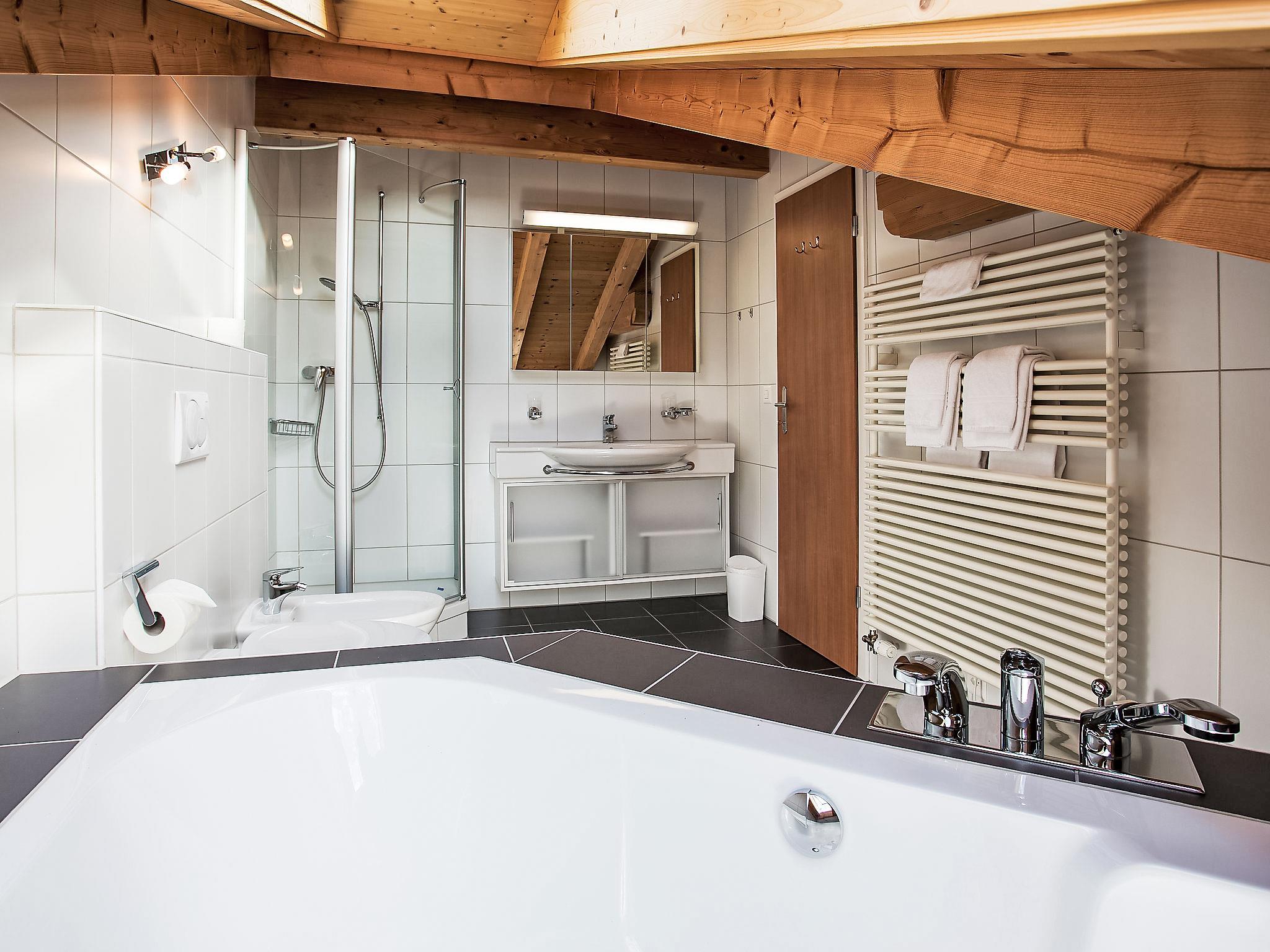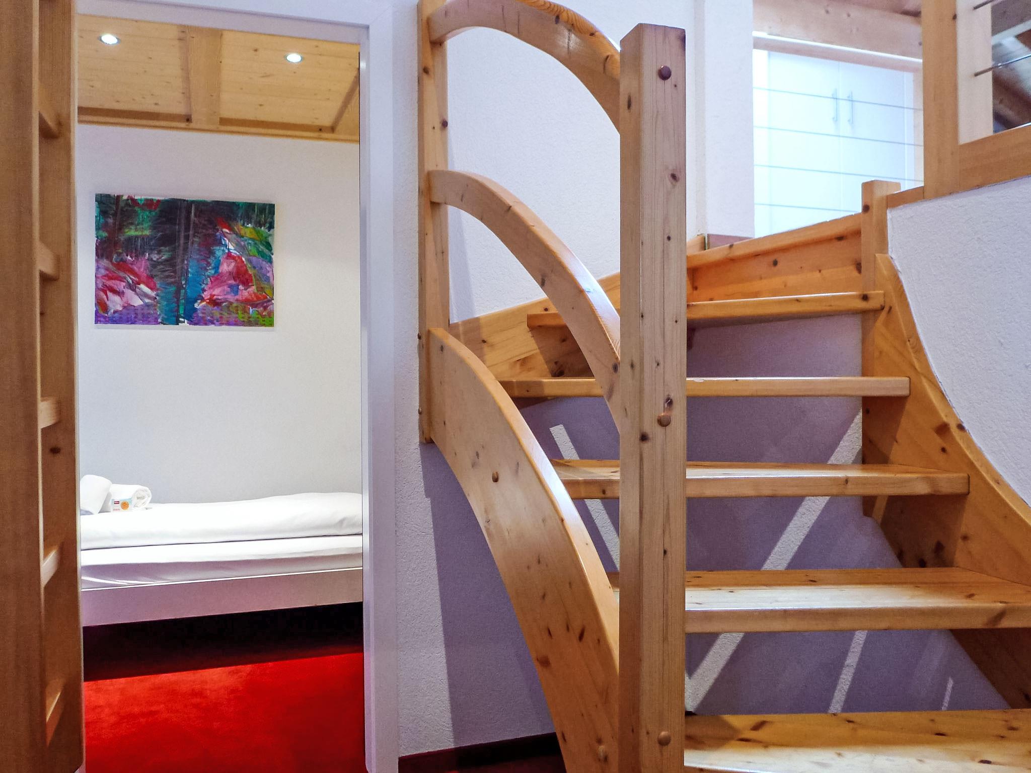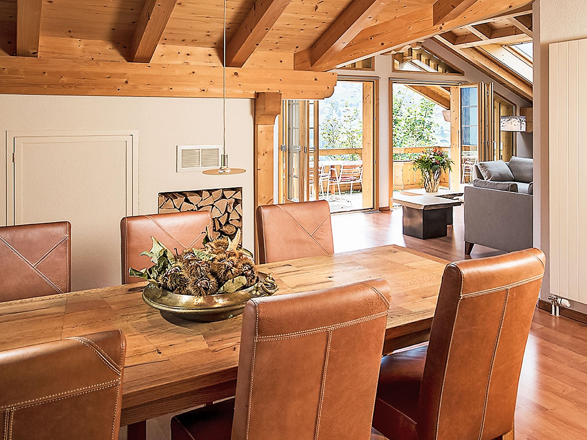 4-room apartment 130 m2, on the top floor, south facing position. Partly with sloping ceilings, beautiful and tasteful furnishings: open living/dining room with sloping ceilings with open-hearth fireplace and cable TV (flat screen), radio. Exit to the balcony, south facing position. 1 room with 1 double bed (2 x 90 cm, length 200 cm). 1 room with 2 beds (90 cm, length 200 cm). 1 small room with 1 bed (90 cm, length 200 cm). Open kitchen (oven, dishwasher, 4 ceramic glass hob hotplates, electric coffee machine, Capsules for coffee machine (Nespresso) extra, raclette grill, fondue Set (cheese)). Bath/WC, shower/WC. Floor heating, boiler (300 litres). Large balcony, south facing position. Balcony furniture. Marvellous view of the mountains, the valley and Eiger. Facilities: hair dryer. Internet (WiFi, free). Parking space n 2 (roofed, 1 car). Please note: non-smokers only. Private entrance, fire extinguisher.