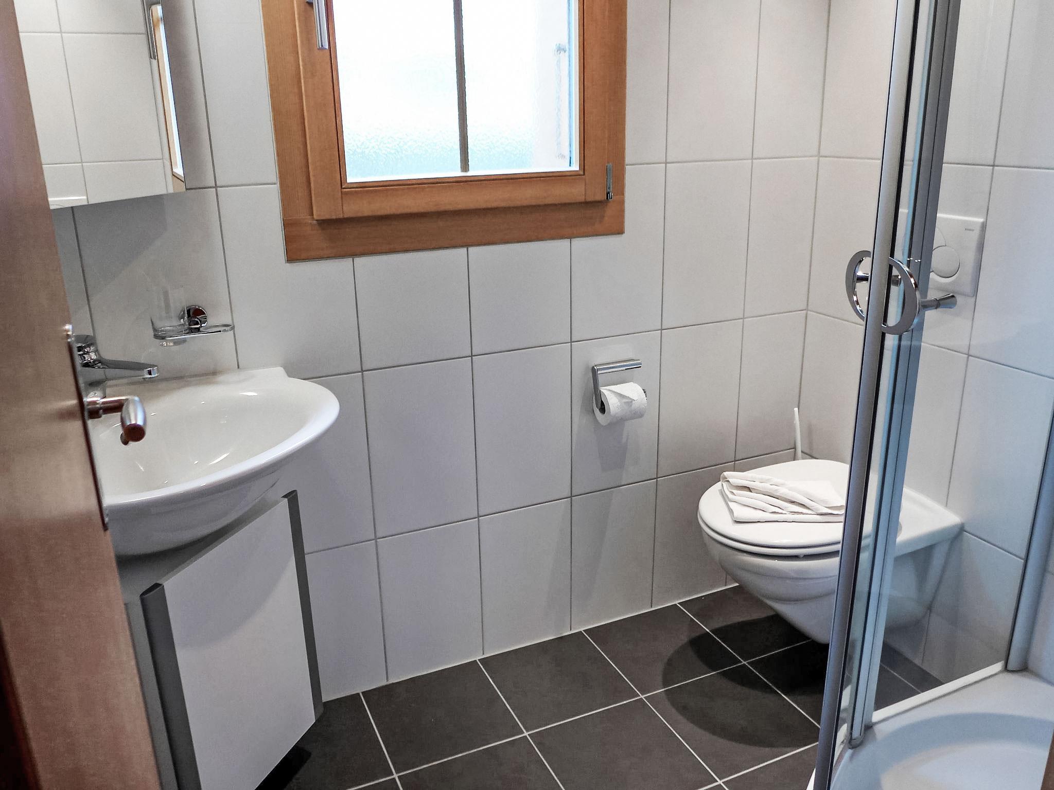 Beautiful apartment house "Chalet Tuffstein". In the district of Tuftbach, 1.1 km from the centre, in a quiet, sunny position on a slope, south facing position. In the house: storage room for skis, central heating system, washing machine, tumble dryer (for shared use). Pre-arrival grocery service. In Winter: please take snow chains. Stepped path to the house. Roofed, parking. Grocery 500 m, shopping centre 1.1 km, bicycle rental 1.5 km, bus stop "Tuftbach" 50 m, railway station "Dorf" 1.1 km, indoor swimming pool 1.2 km. Golf course (9 hole) 3 km, tennis 2.5 km, minigolf 1.4 km, sports centre 1.3 km, gondola lift 1.6 km, ski rental 1.3 km, ski bus stop 50 m, children's ski school 2.5 km, ice rink 1.3 km, children's playground 1.3 km. Well-known lakes can easily be reached: Thuner-/Brienzersee 20 km. Please note: no lift. Ski bus (free of charge). The keys‘ handover takes place by the agency Interhome in Grindelwald.