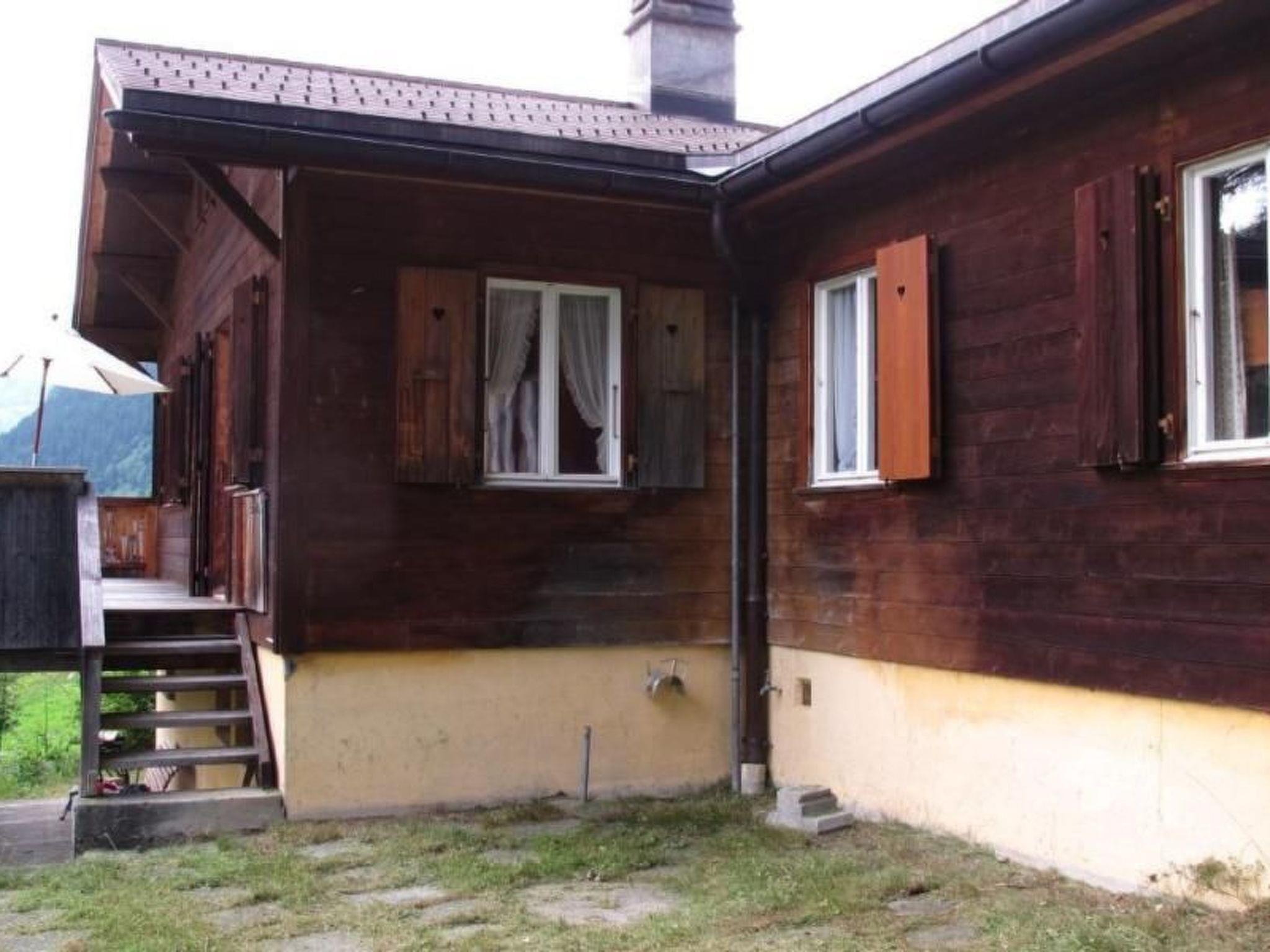 Magnificent view. Detached chalet, 2 km west of the centre of Grindelwald, 1100 m a.s.l.). In a quiet position; unobstructed view to the south of the north face of the Eiger. Large terrace and seating area in front of the house
