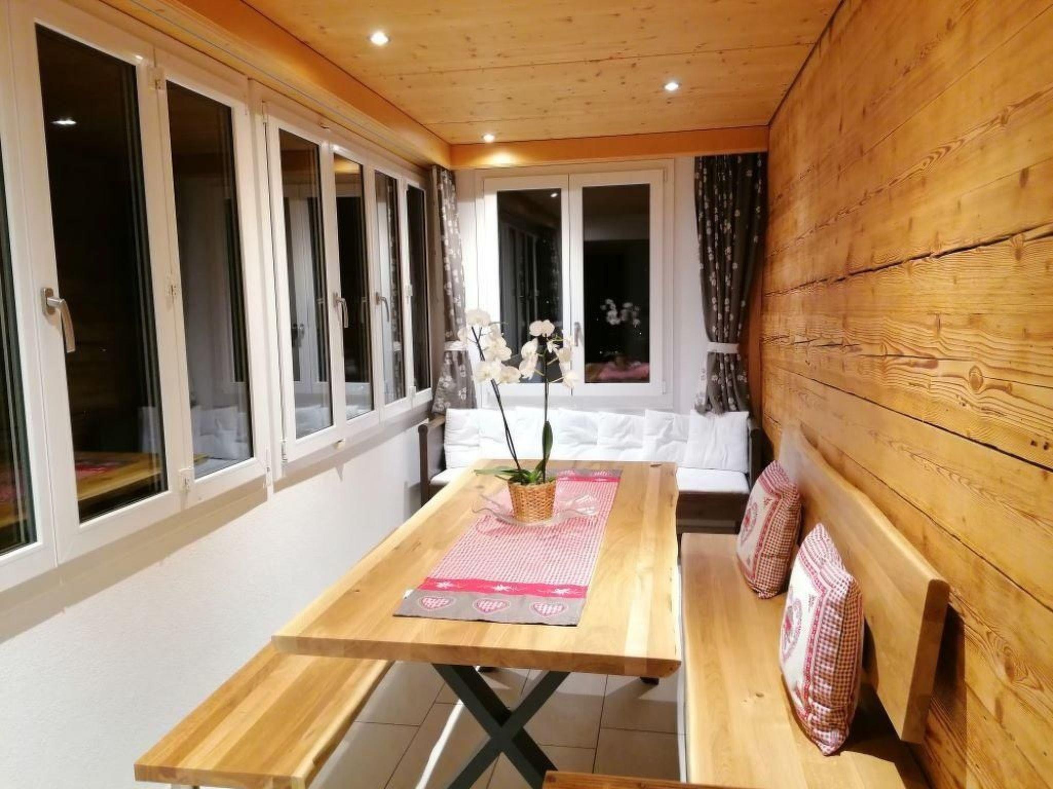 Directly from the living room, you can access the south-facing balcony with a marvellous view of the north face of the Eiger.