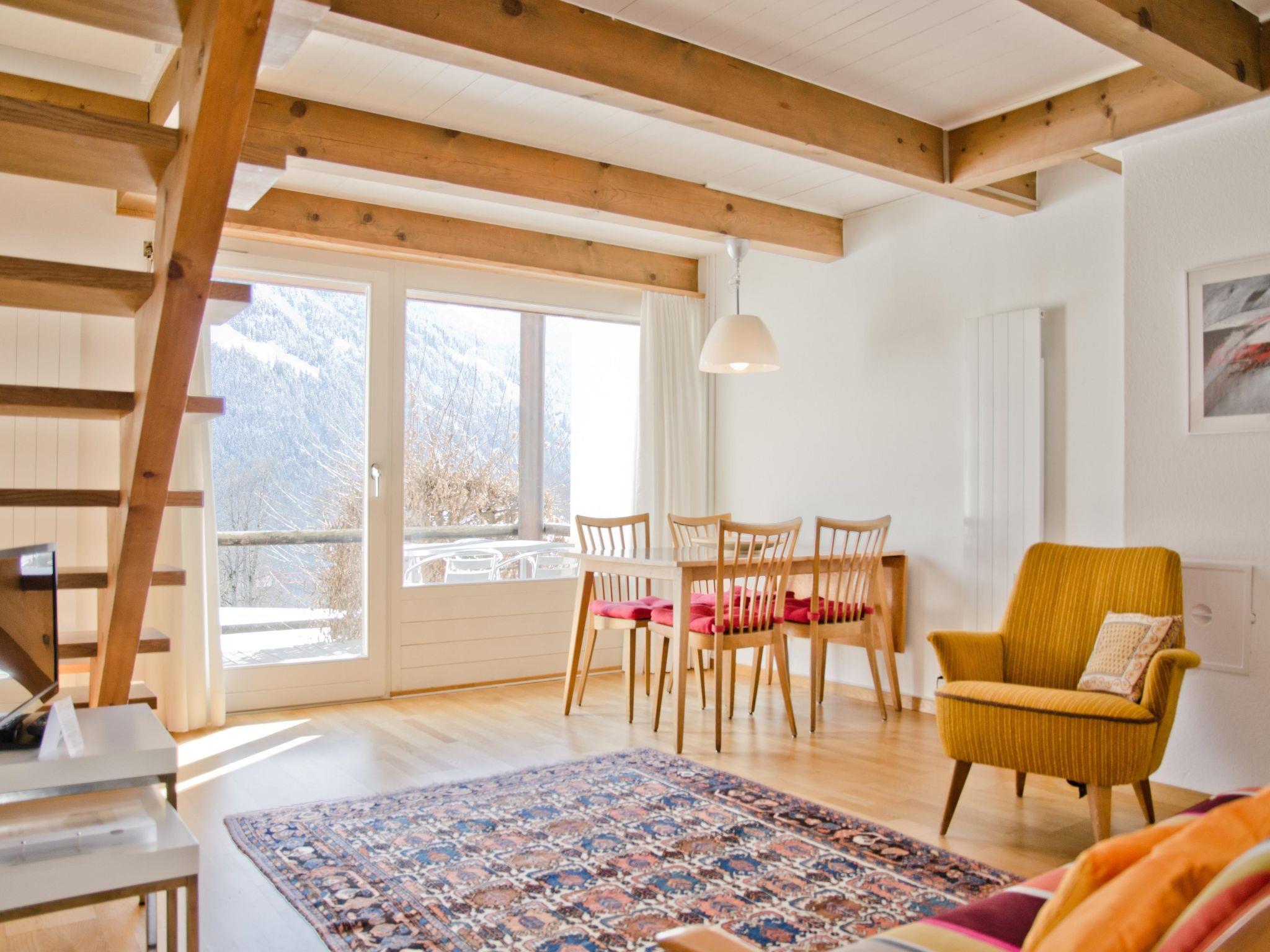On 75m2, the cosy 3-room maisonette offers a bedroom with double bed, a bedroom with 2 single beds and a bathroom with shower and WC. The kitchen opens onto the cosy living and dining area. The covered terrace offers a fantastic view of the mountain panorama.