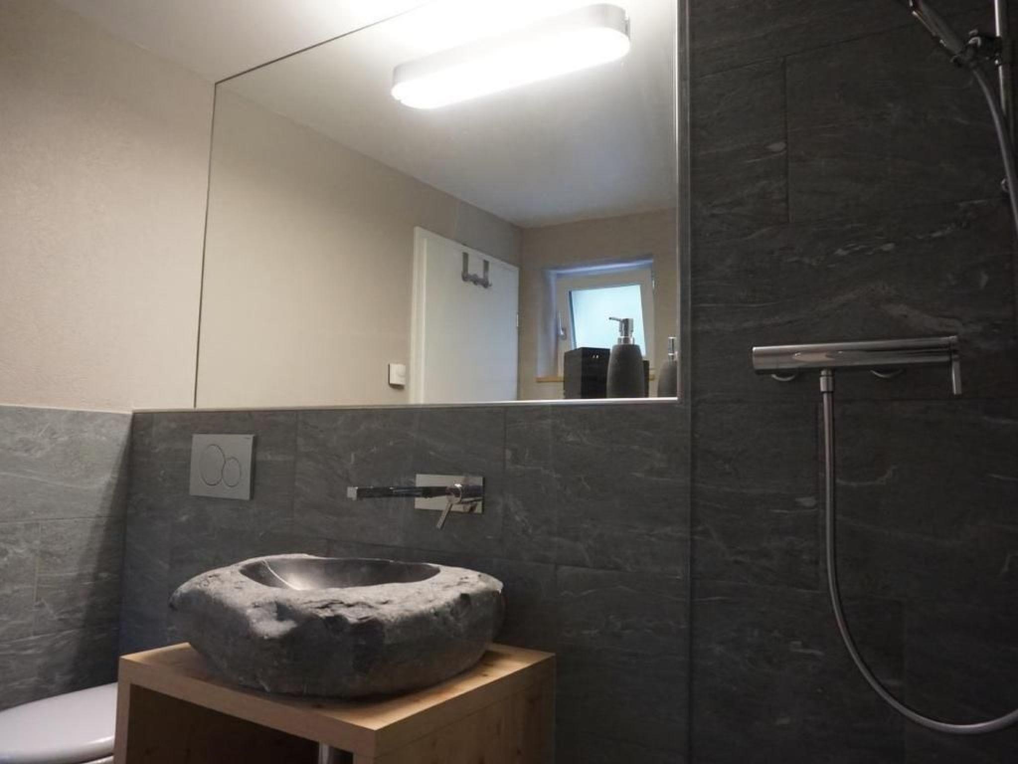 The bedroom is equipped with a box-spring bed, which can be separated. You even have a view of the north face of the Eiger from your bed! In the living room, the upholstered suite can be converted into a sofa bed with a separate mattress (140x200).