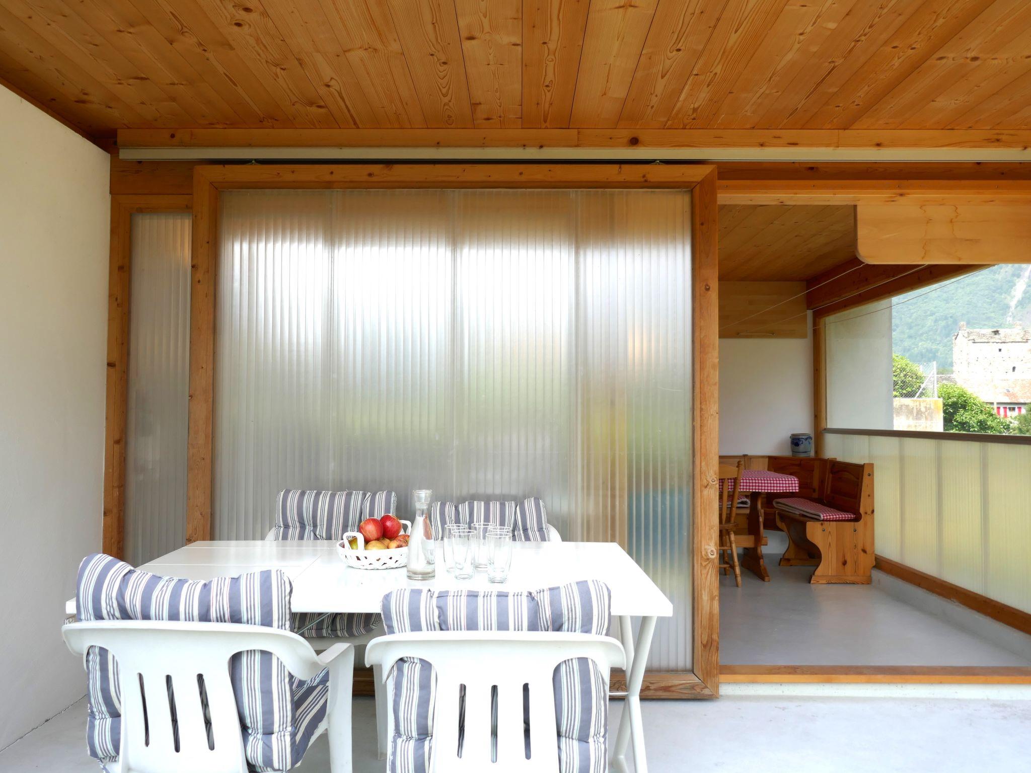 "Casa Calanca", 4-room house 140 m2. Object suitable for 2 adults + 3 children. Simple and practical furnishings: living room with TV and DVD. Kitchen (oven, dishwasher, 4 ceramic glass hob hotplates, microwave, freezer, electric coffee machine, Capsules for coffee machine (Delizio) extra, fondue Set (cheese)) with dining table, radio and wood-burning stove. Exit to the patio. Sep. WC. Upper floor: 1 room with 1 bed (90 cm, length 200 cm), 1 pull-out bed (2 pers. 2 x 90 cm, length 200 cm). Exit to the balcony. 1 double bedroom with 1 double bed (2 x 90 cm, length 200 cm). Bath/bidet/WC. Electric heating, wood heating. Garden. Barbecue (portable), deck chairs (2), conservatory. Beautiful view of the countryside and the town. Facilities: washing machine, dryer, iron, children's high chair, baby cot for up to 2 year olds (extra), hair dryer. Internet (WiFi, free). Please note: suitable for families. Non-smoking house. Maximum 1 pet/ dog allowed.