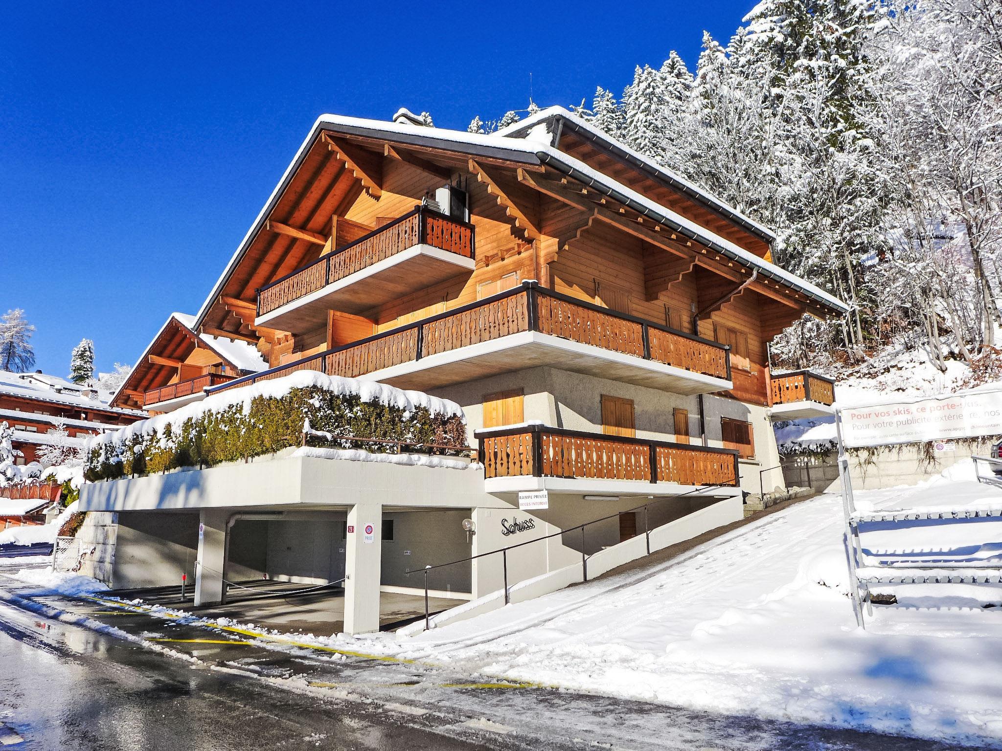 Barboleusaz: Apartment block "Le Schuss". In the centre of Barboleusaz, in a central, sunny position, 10 m from the skiing area, south facing position. Parking. Shop, grocery, restaurant 200 m, bakery 500 m, bus stop 50 m, railway station "Barboleusaz" 500 m, indoor swimming pool 5 km. Golf course (18 hole) 10 km, tennis 700 m, indoor tennis centre 5 km, skisport facilities 10 m, ski-kindergarten 5 km, ice rink 5 km, children's playground 200 m. Please note: no lift. Free ski bus service to the ski region Les Chaux.