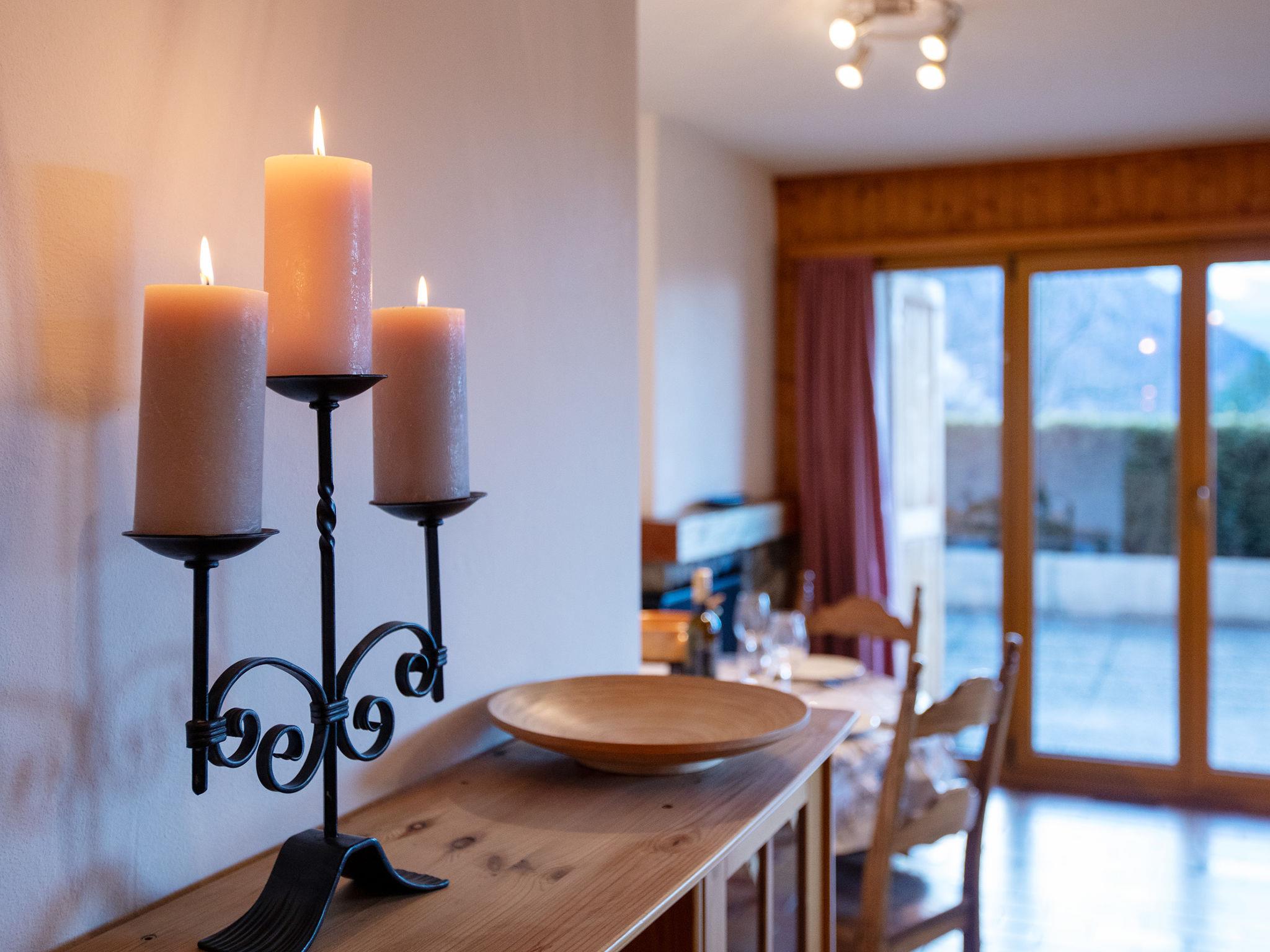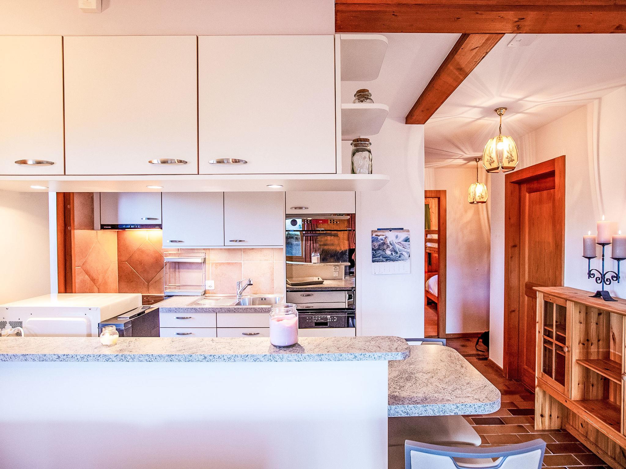 "Le Schuss 1", 3-room apartment 52 m2, on the ground floor, south-east facing position. Object suitable for 2 adults + 2 children. Comfortable and beautiful furnishings: living/dining room with open-hearth fireplace, dining table and TV (flat screen). Exit to the terrace, south-east facing position. 1 room with 1 double bed (1 x 160 cm, length 200 cm). 1 room, without wardrobe with 1 x 2 bunk beds (90 cm, length 200 cm). Open kitchen (dishwasher, 4 ceramic glass hob hotplates, toaster, kettle, freezer, electric coffee machine, Capsules for coffee machine (Delizio) extra, steamer, raclette grill, fondue Set (cheese)). Exit to the terrace, south-west facing position. Shower/WC. Large terrace 25 m2, south-east facing position and south-west facing position. Terrace furniture. Beautiful view of the mountains. Facilities: washing machine, hair dryer. Internet (WiFi, free). Parking space n 1 (roofed, 1 car). Please note: non-smokers only.