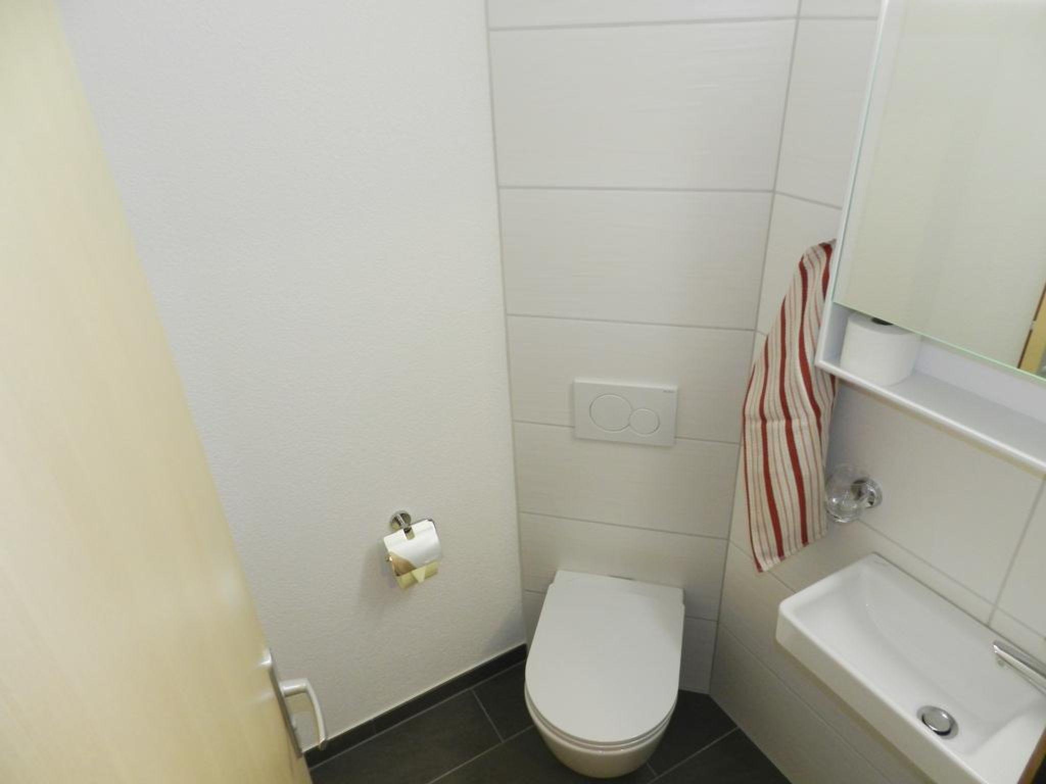 Spacious and bright living-/dining room (total area of 60sqm) with open-plan kitchen (furnished with ceramic hob, combined oven/microwave oven, dishwasher, coffee machine with capsules (Nespresso) as well as a fondue- and raclette-set), dining table, swedish oven, sofa and TV. 2 bedrooms each with 1 box spring bed (180x200cm). 1 bedroom with box spring bed (160x200cm). 1 bathroom with separate shower, bathtub and toilet. 1 separate toilet. Store room, washing machine and tumble dryer (including ironing board and flat iron) are available on the lower ground floor. The whole apartment disposes of a floor heating, individual adjustable in each room. WiFi. Baby cot (70x120cm) incl. bed linen and highchair available. Important note: By occupancy with up to 2 persons (lower price) there is only one bedroom at your disposal. The other two bedrooms remain locked.