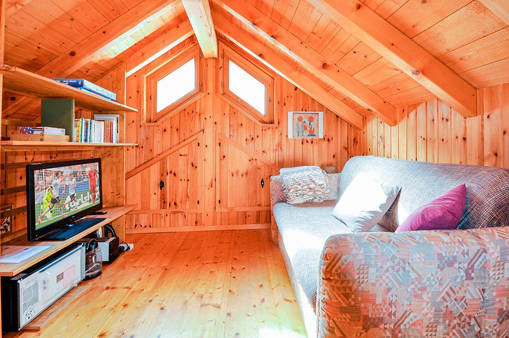 1. Etage (starke Dachschrägen): gemütliche Galerie mit Sofa-Sitzecke. 2-Bettzimmer.